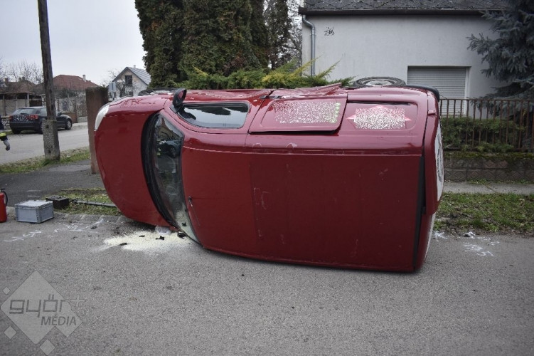 Egy 30 éves helyi nő kistehergépkocsival közlekedett Győrben, a Gábor Áron utcában december 15-én 13 óra 30 perc körül. A Lepke utca kereszteződéséhez érve, oda úgy hajtott be, hogy nem adott áthaladási elsőbbséget a neki jobbról érkező, 69 éves győri asszony által vezetett személygépkocsinak, és neki ütközött. A karambol során a tehergépjármű az oldalára borulva állt meg – írja a police.hu.