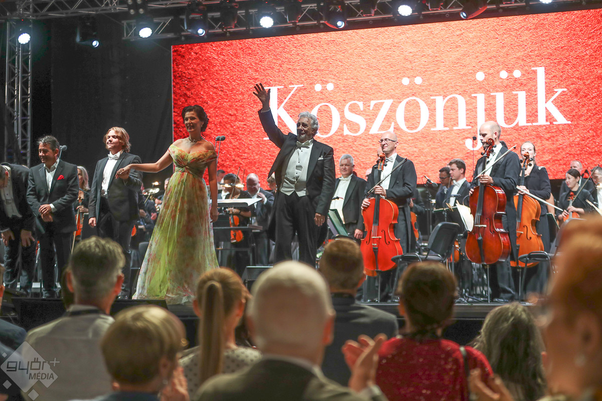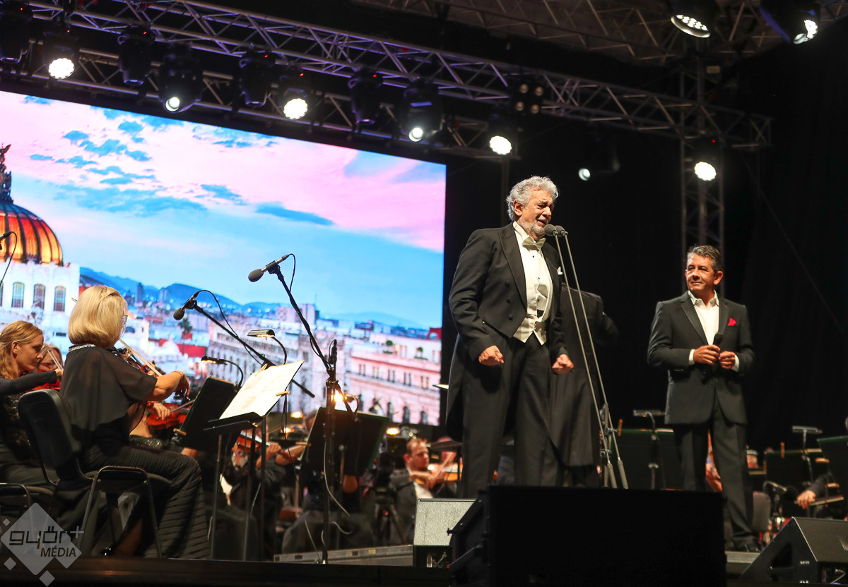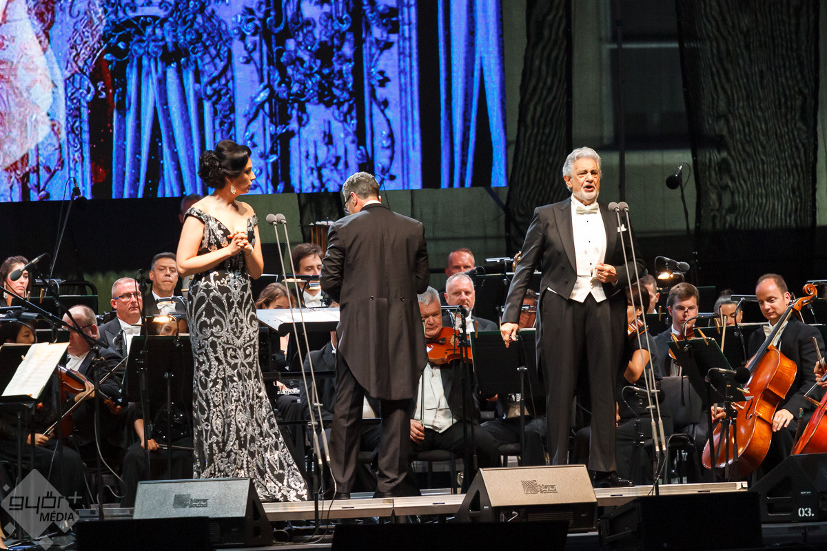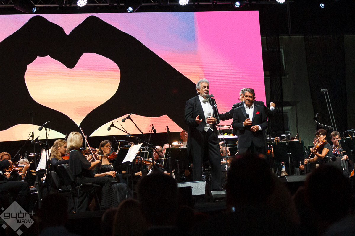 A világ legismertebb énekese, Plácido Domingo és vendégei a Győri Filharmonikus Zenekarral több ezer ember előtt adtak pénteken este nagysikerű hálakoncertet Győrben, a Dunakapu téren
