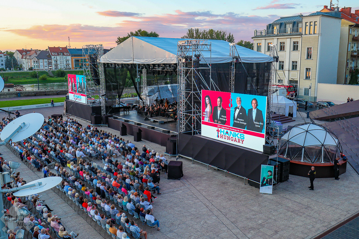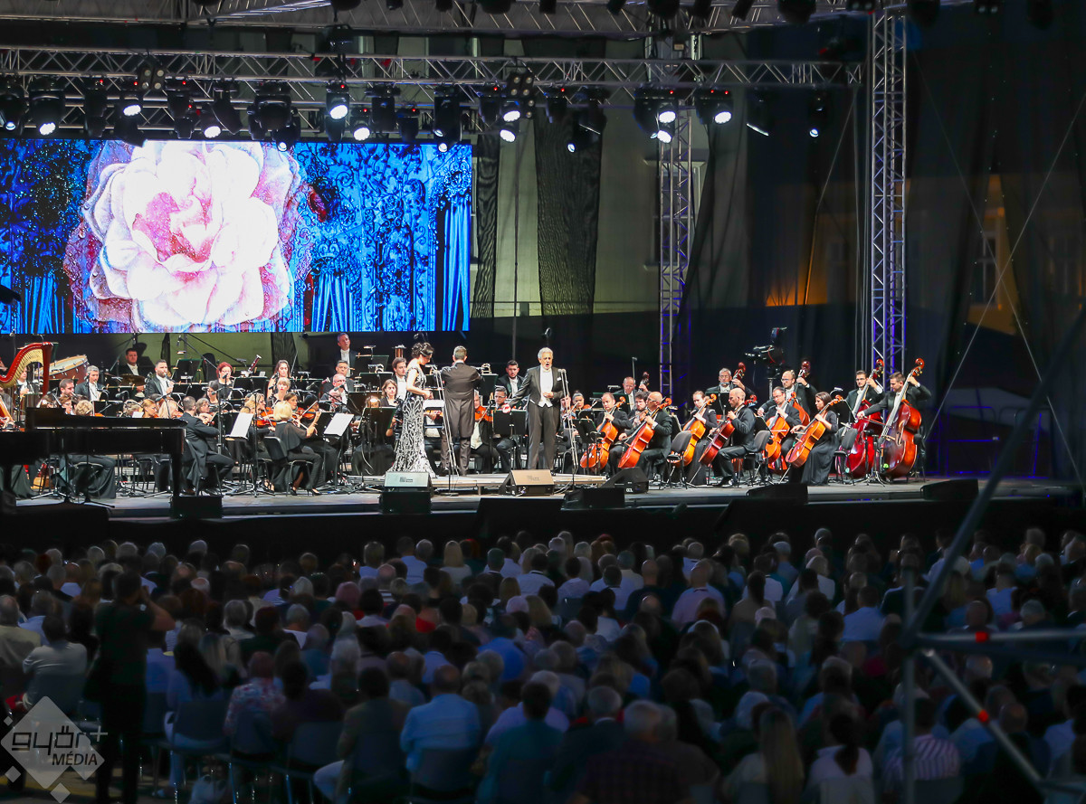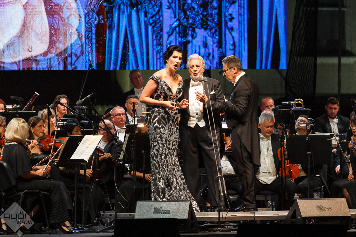 A világ legismertebb énekese, Plácido Domingo és vendégei a Győri Filharmonikus Zenekarral több ezer ember előtt adtak pénteken este nagysikerű hálakoncertet Győrben, a Dunakapu téren