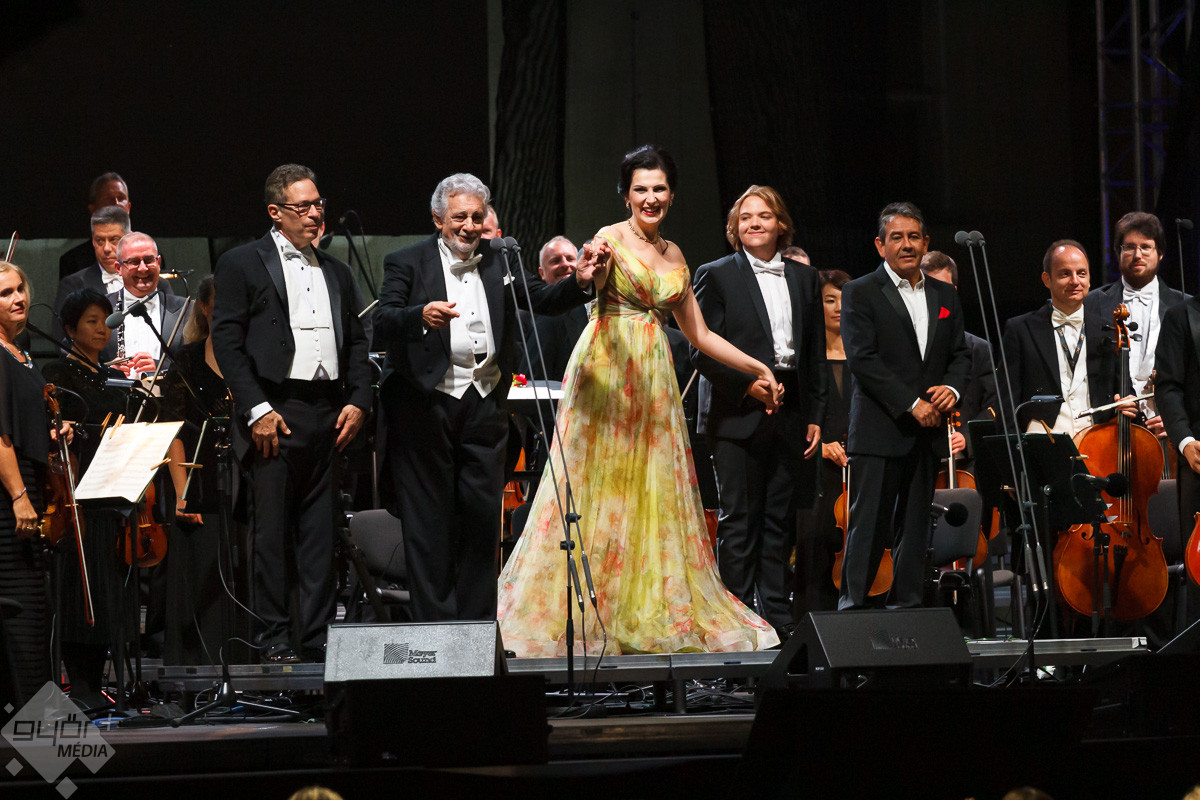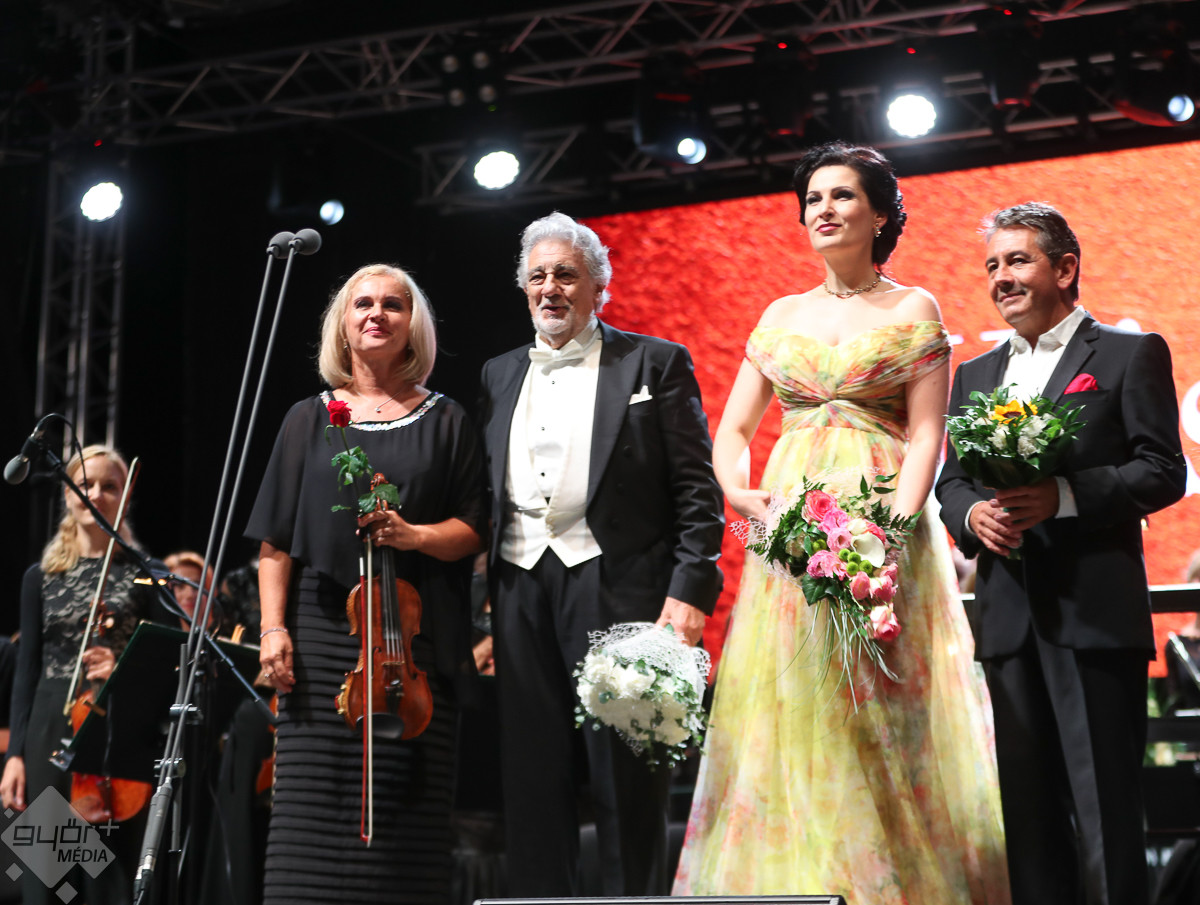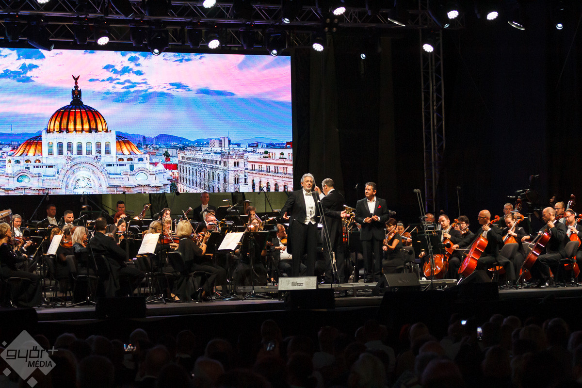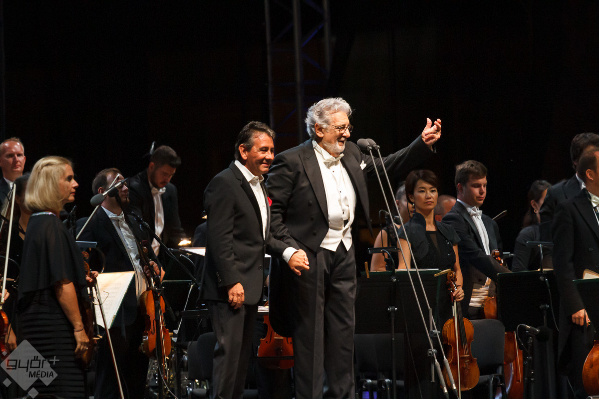 Plácido Domingo a közreműködő szólistákkal, Adela Zaharia szopránnal, fiával, Plácido Domingo Jr.-ral, a Virtuózok műsorának korábbi győztesével, Balázs-Piri Soma zongoristával, a Győri Filharmonikus Zenekarral, valamint a zenekart ezen az estén vezénylő Eugene Kohnnal adott felejthetetlen koncertet Győrben.