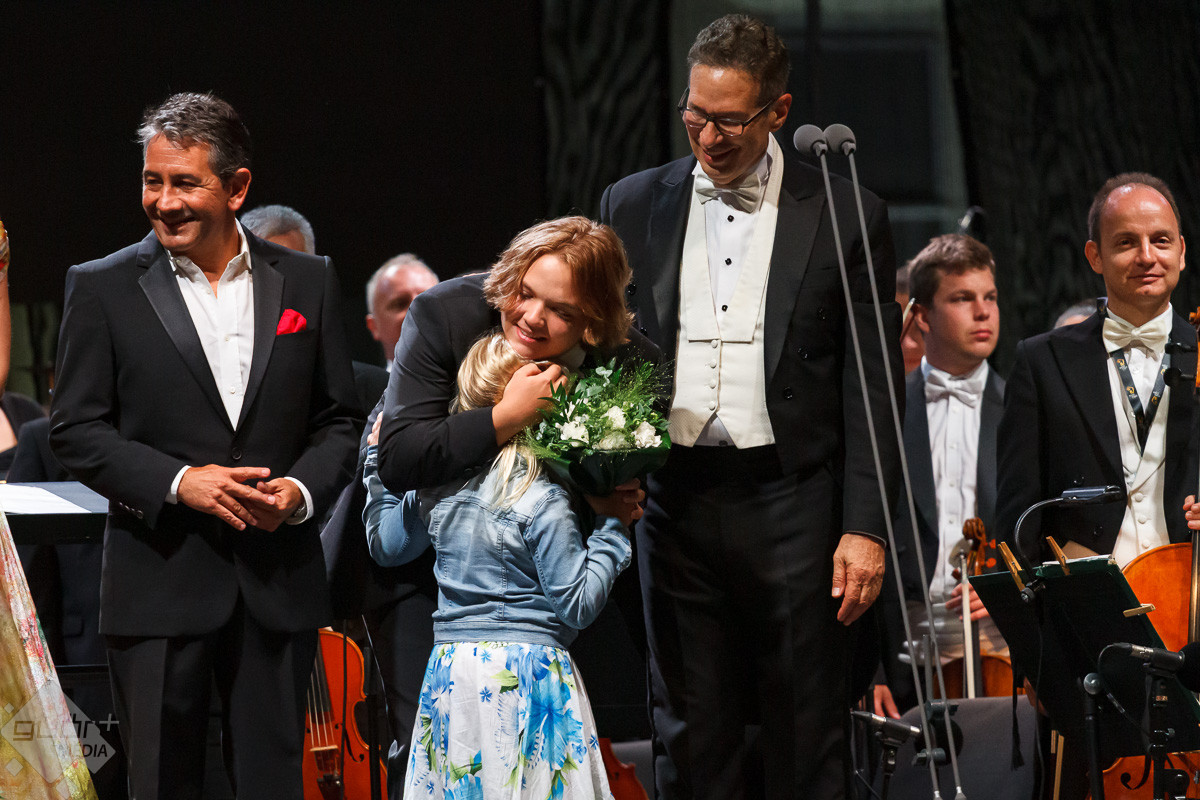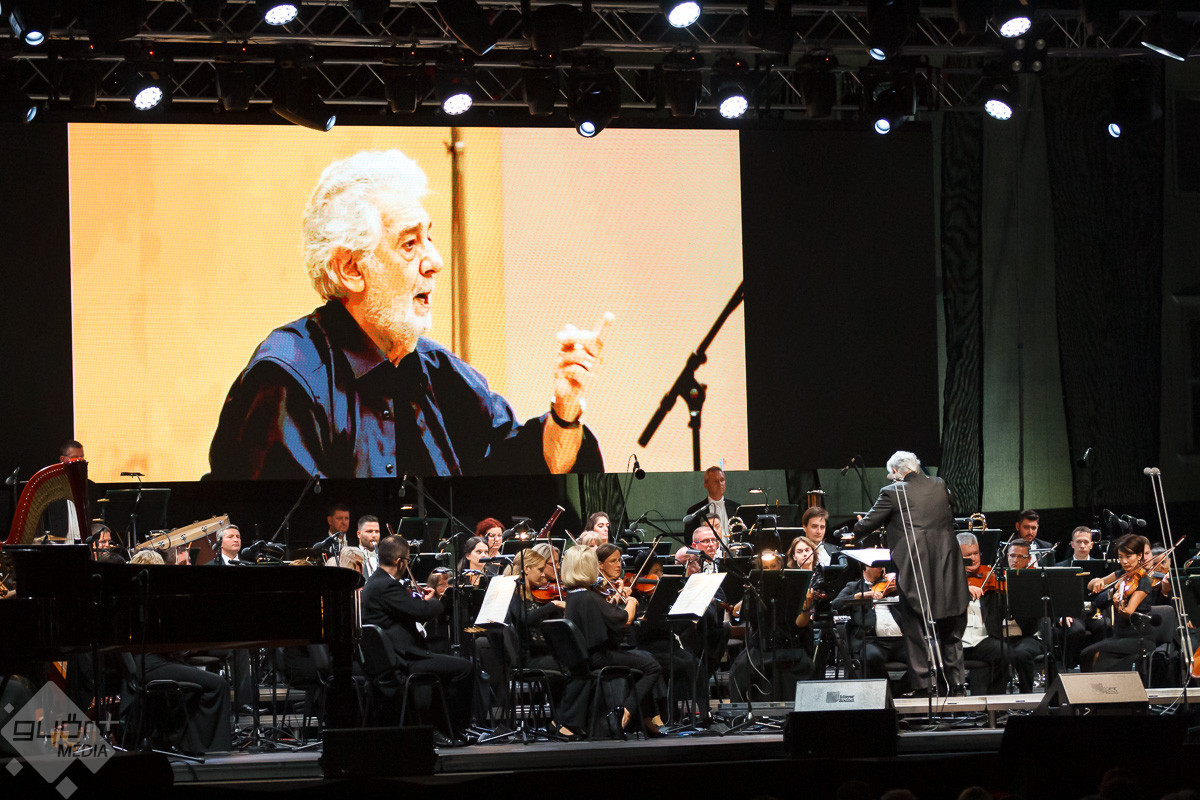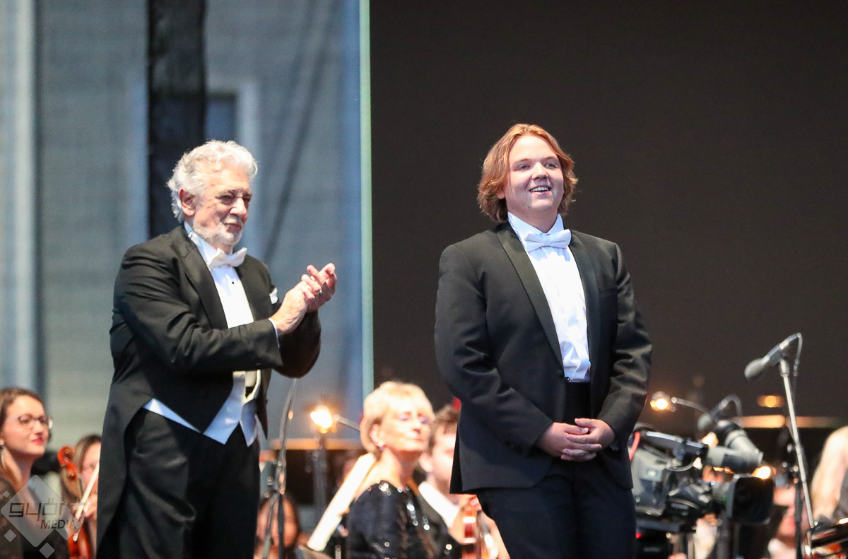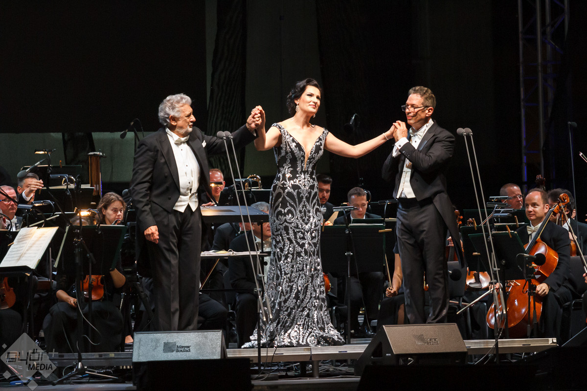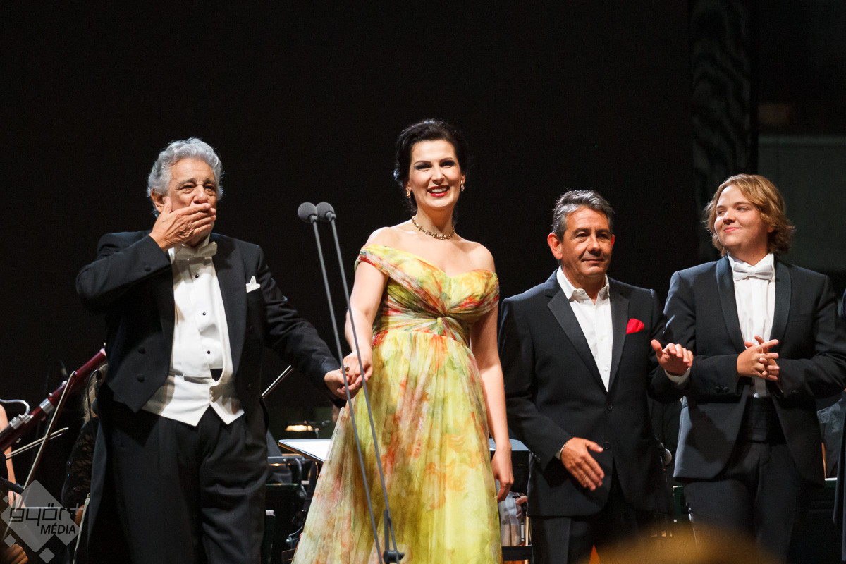 Plácido Domingo a közreműködő szólistákkal, Adela Zaharia szopránnal, fiával, Plácido Domingo Jr.-ral, a Virtuózok műsorának korábbi győztesével, Balázs-Piri Soma zongoristával, a Győri Filharmonikus Zenekarral, valamint a zenekart ezen az estén vezénylő Eugene Kohnnal adott felejthetetlen koncertet Győrben.