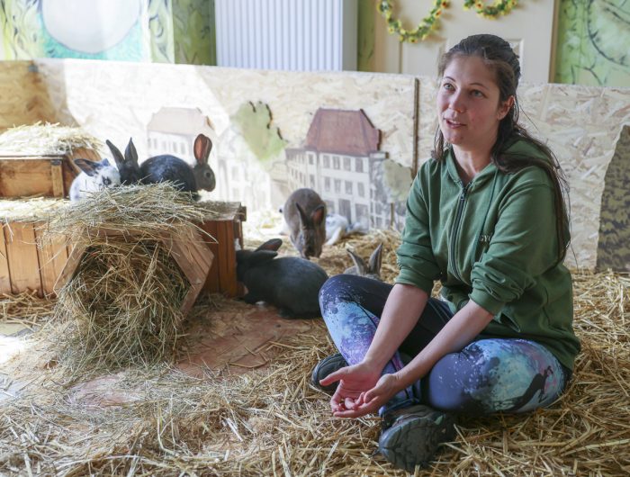 Wenczel Flóra a Húsvéthoz közeledve, a nyuszik társaságában a felelős állattartást is hangsúlyozta a keddi eseményen.