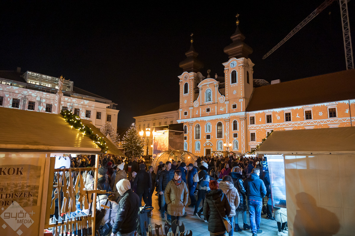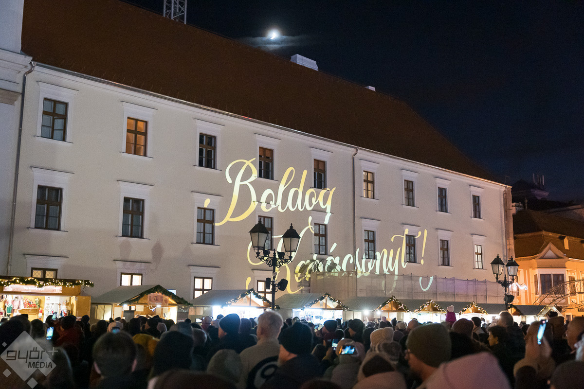 A mesevilágot idéző, csodálatos győri adventi vásárban ismét ünnepi pillanatok érkeztek el advent harmadik vasárnapján. A város óriási adventi koszorúján a hit és a remény gyertyája után felkapcsolták az öröm gyertyáját is.