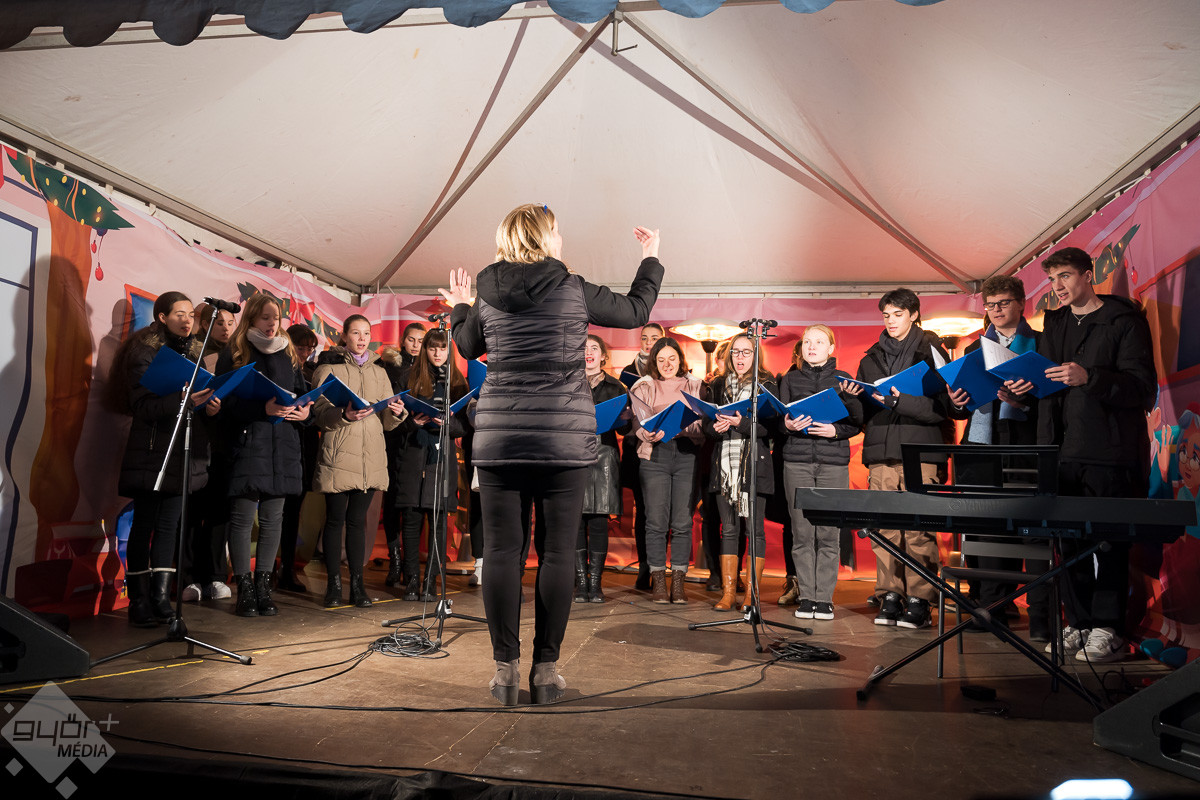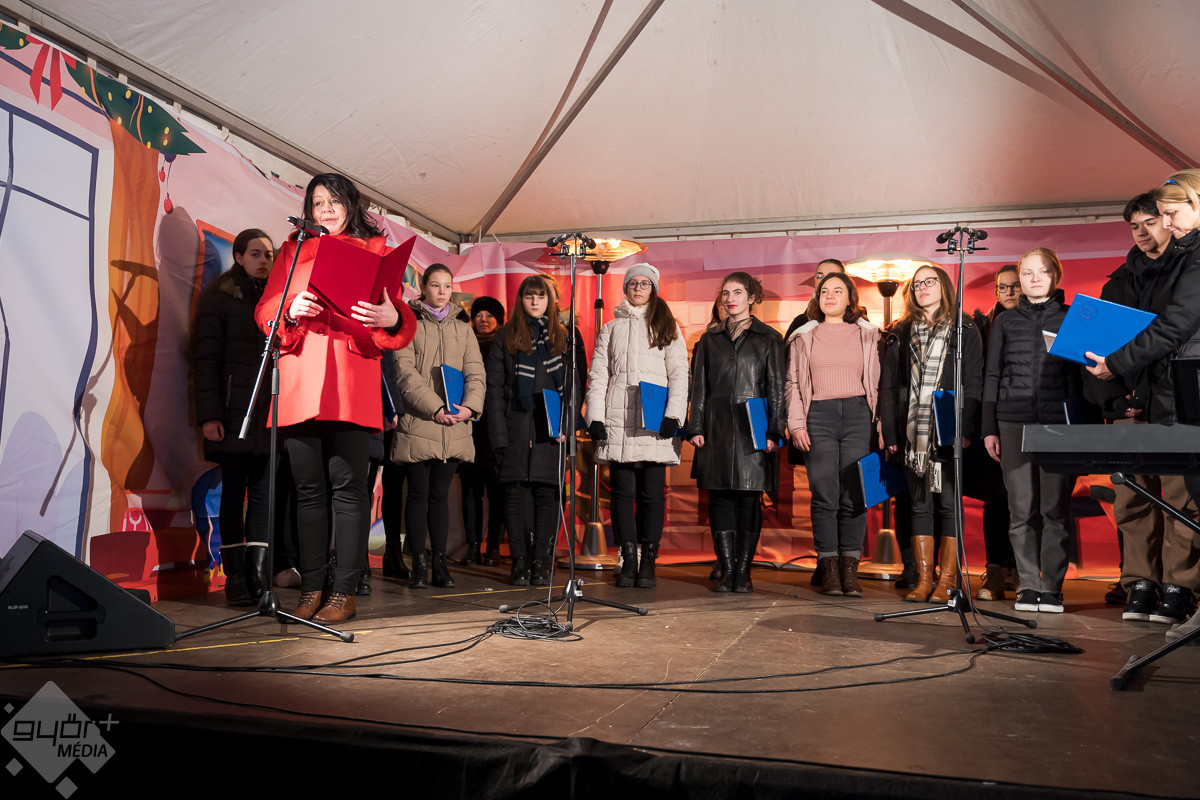 Beszédet mondott Kun Szilvia, a Győr-Moson-Sopron vármegyei Vöröskereszt vezetője, majd a lángot Szemerei János, evangélikus püspök gyújtotta meg. A hangulatos adventi műsort a Czuczor Gergely Bencés Gimnázium kara adta.