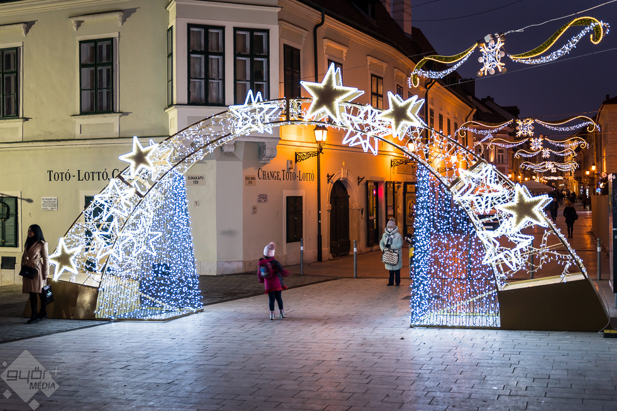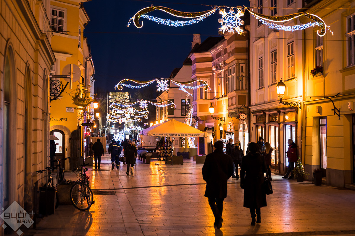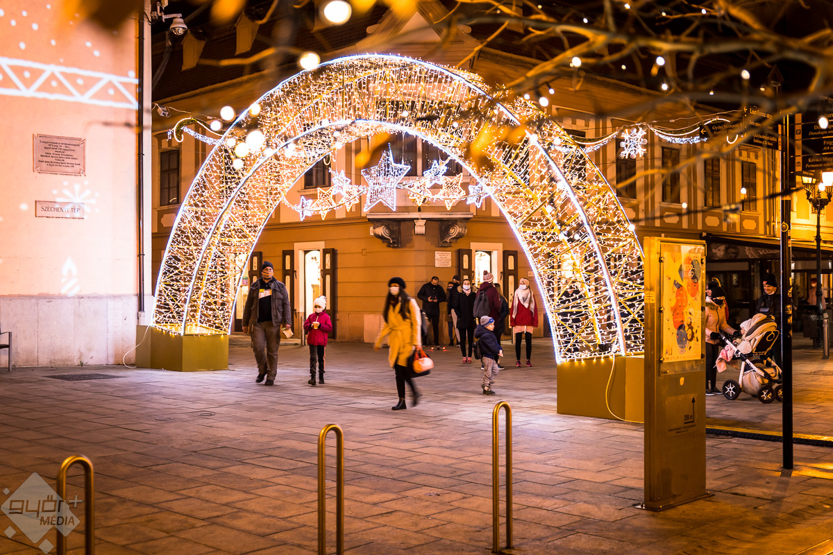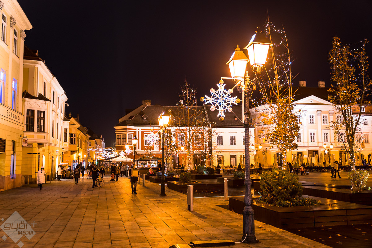 Pénteken kora este a Belvárosban felkapcsolták az ünnepi díszkivilágítást. Győr pedig ezekben az ünnepi fényekben is varázslatos és szívmelengető.