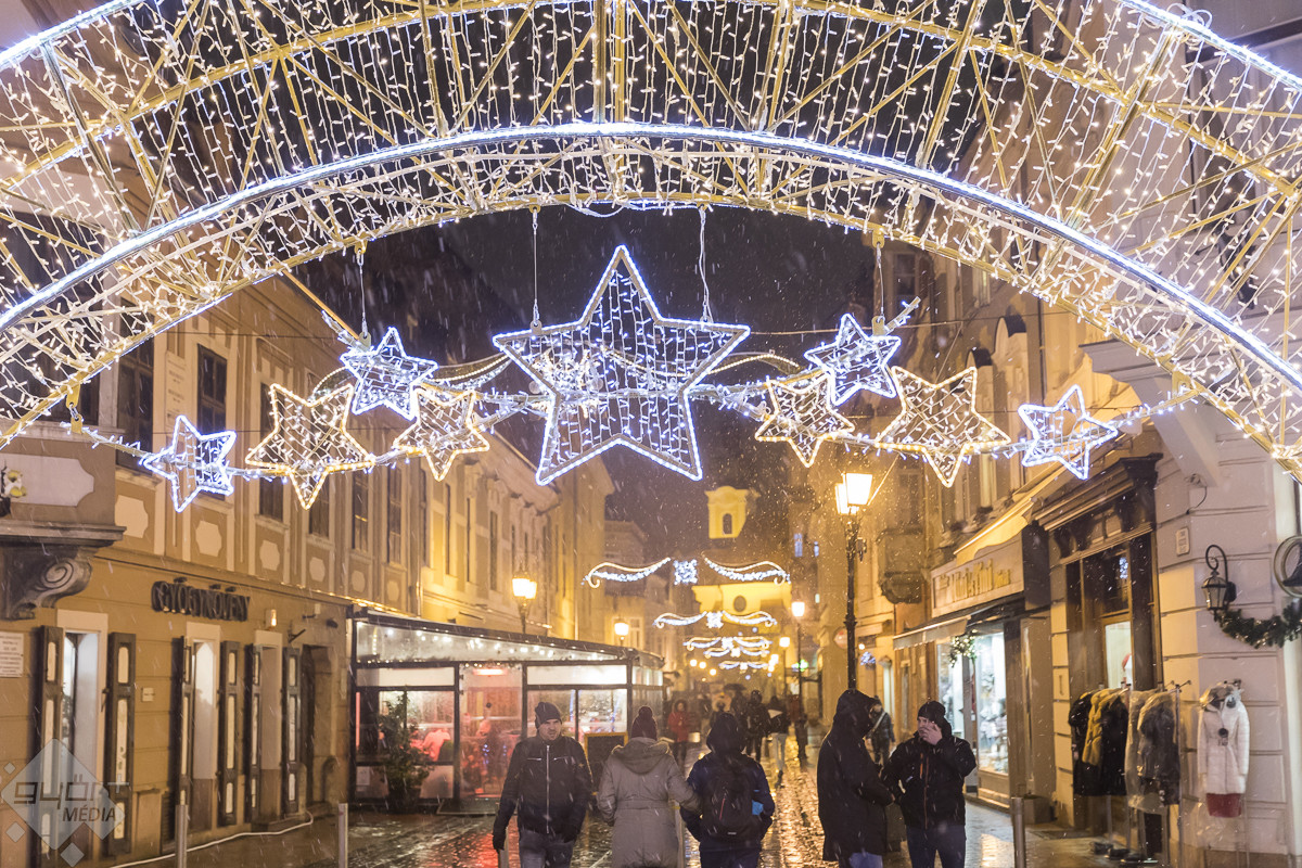 Az ünnepi fényekkel együtt a hó is megérkezett.