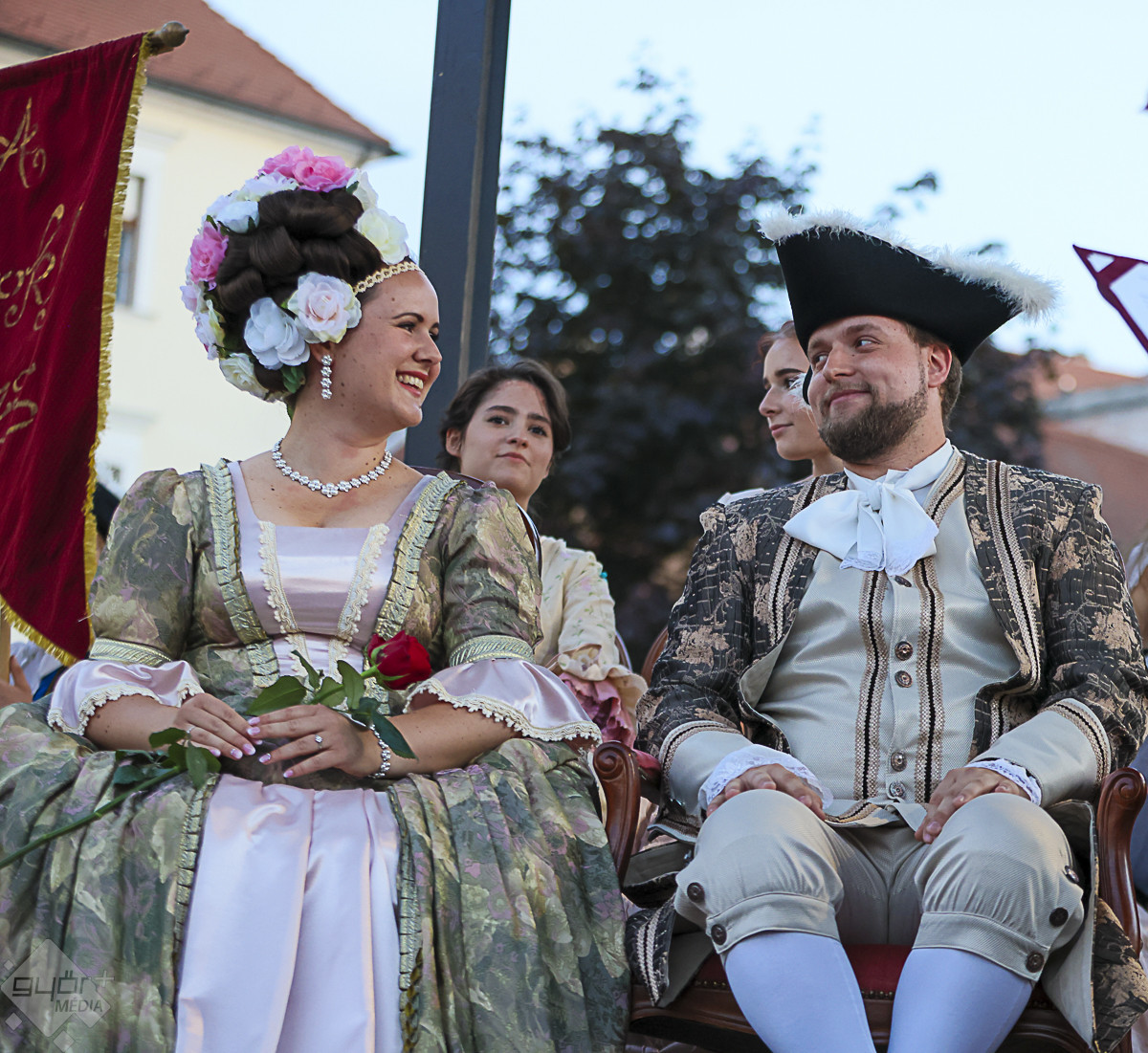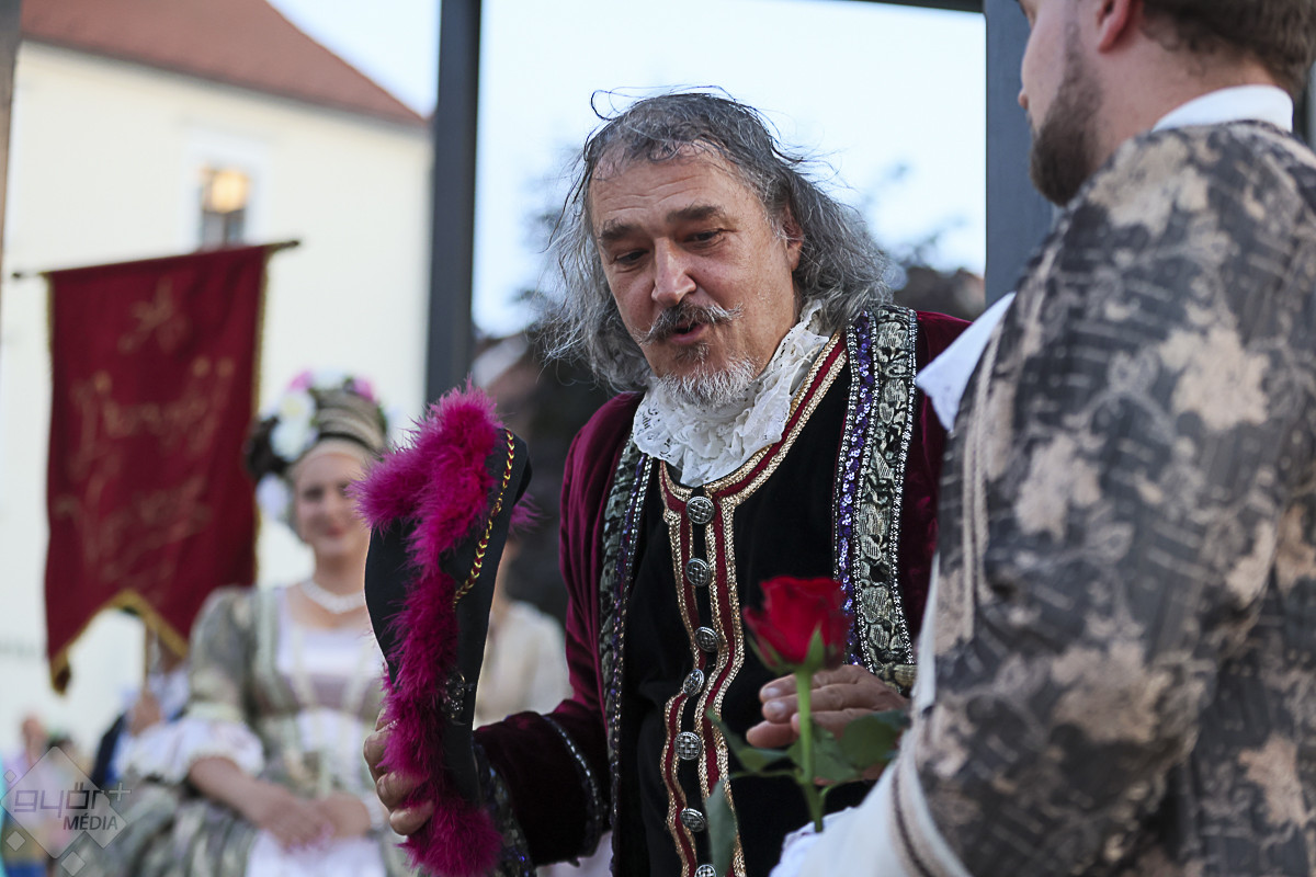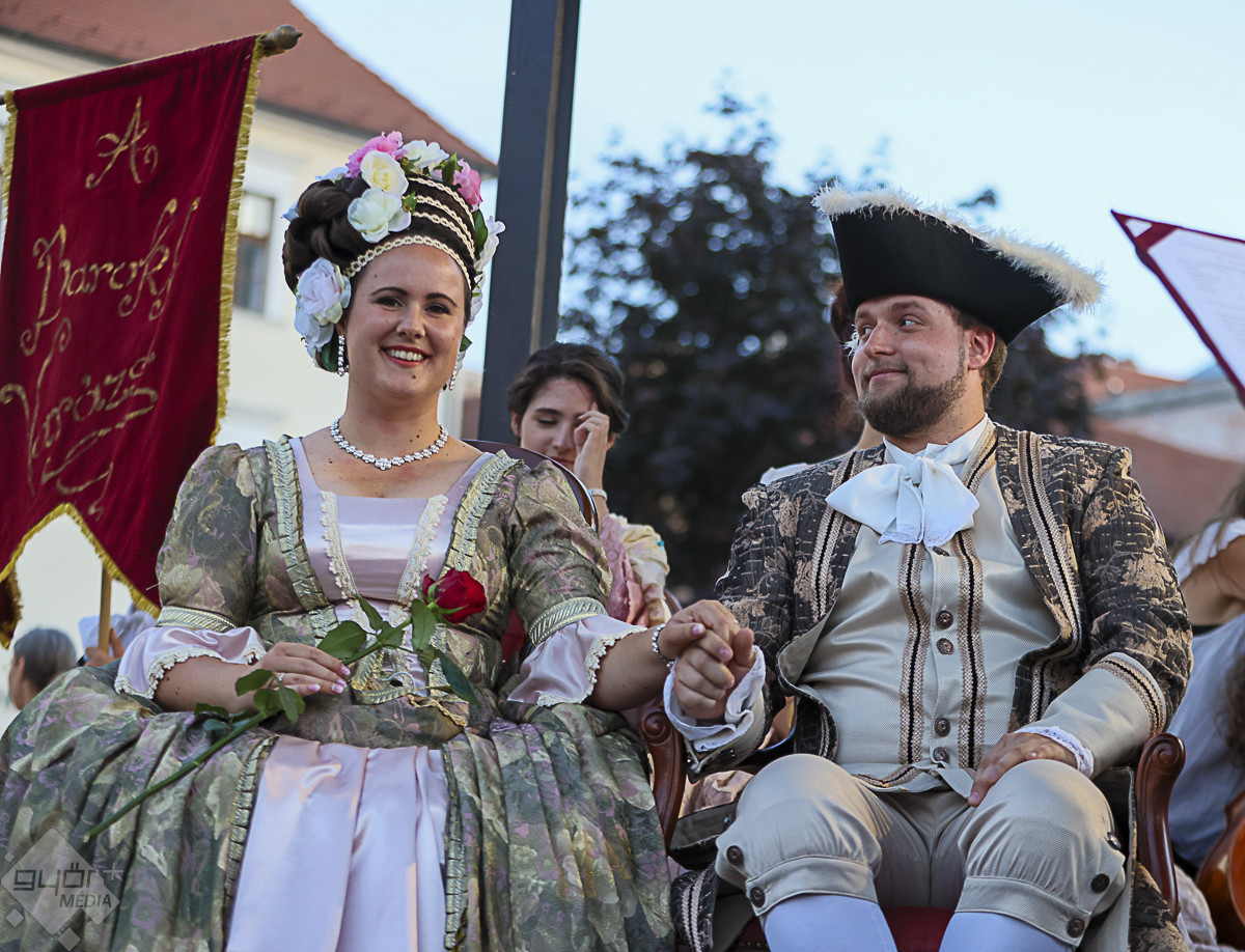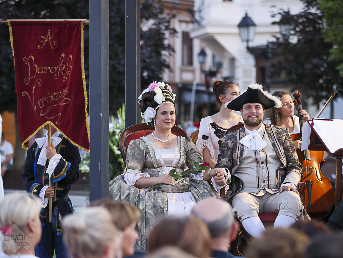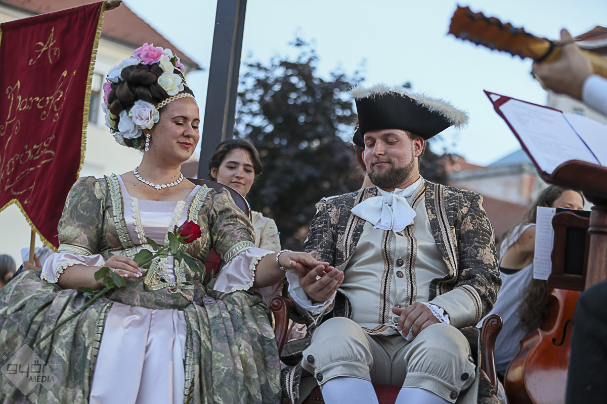 A Széchenyi téren már Fodor Virág és Schreiner Károly, a barokk pár is bekapocsolódott a programban, hiszen felelevenítették azt a szép szokás, mely szerint a vőlegény az esküvő előtti este muzsikaszóval vall szerelmet jegyesének. A romantikus pillanatokat szintén sokan kísérték figyelemmel.