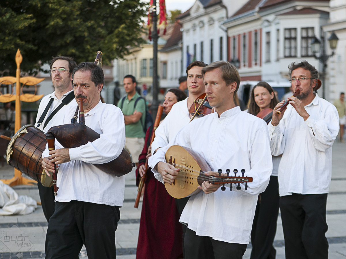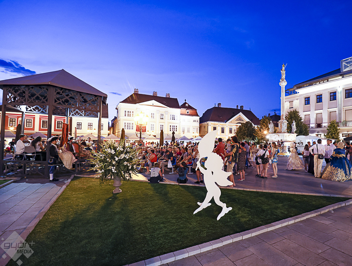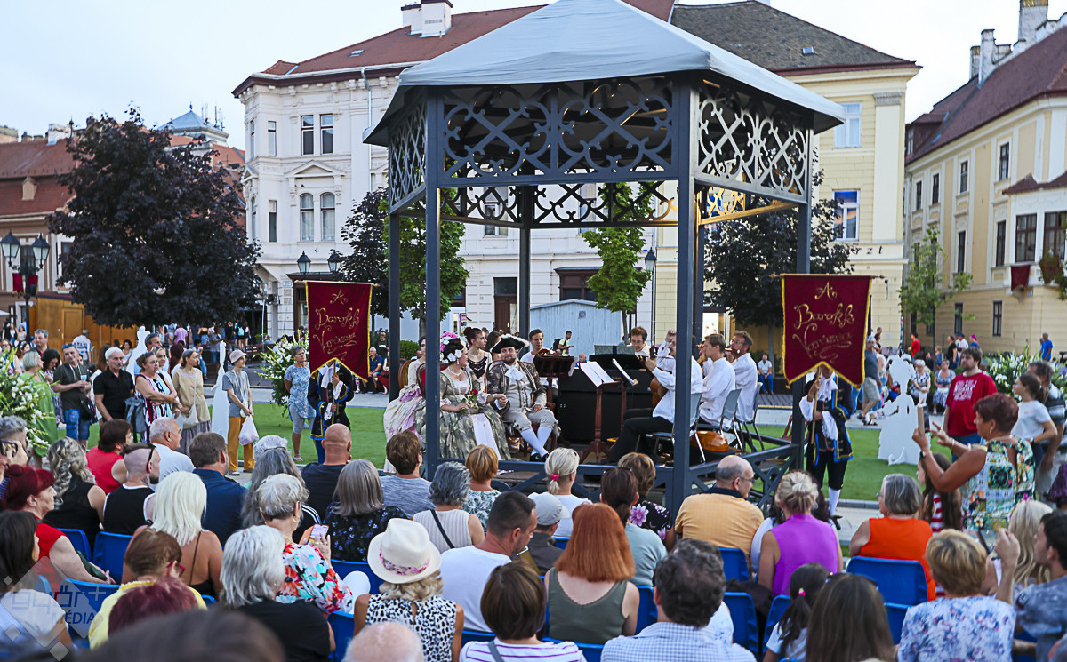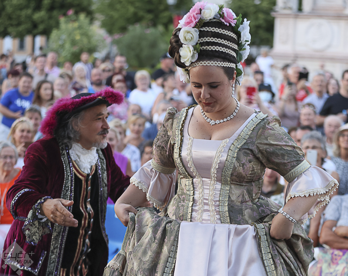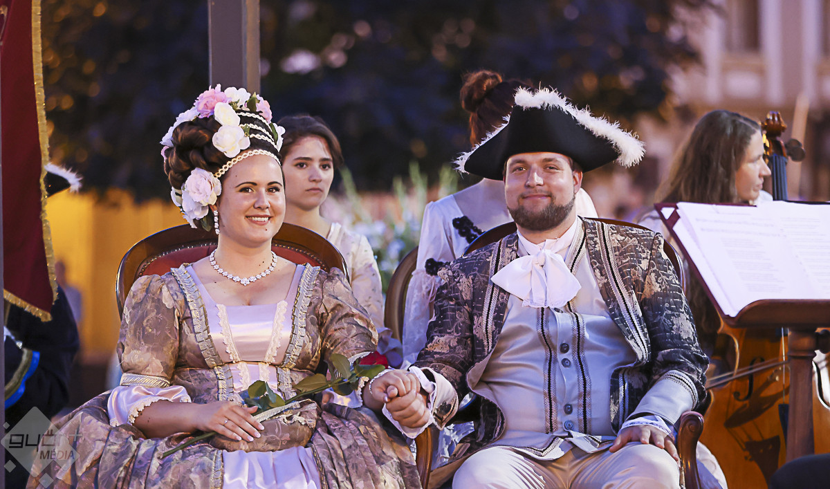 A Széchenyi téren már Fodor Virág és Schreiner Károly, a barokk pár is bekapocsolódott a programban, hiszen felelevenítették azt a szép szokás, mely szerint a vőlegény az esküvő előtti este muzsikaszóval vall szerelmet jegyesének. A romantikus pillanatokat szintén sokan kísérték figyelemmel.