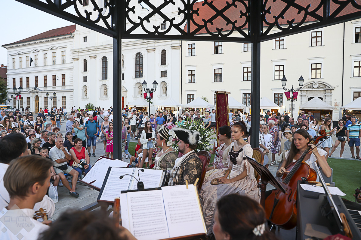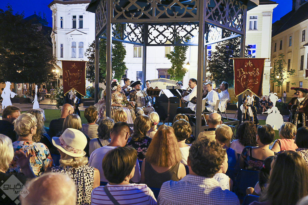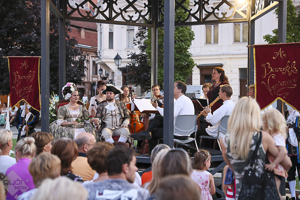 A barokk hétvégén a XVII-XVIII. századi európai kultúrát elevenítik fel a győri belvárosban. Két napon át igazi fesztiválélménnyel gazdagodhatnak a látogatók, mert a színpadon zajló produkciók mellett az utcákon lépten nyomon felbukkannak vidám jelmezesek, táncosok, vásári komédiák.