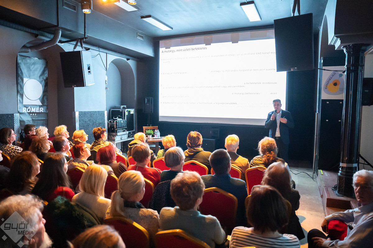 Kapunyitás előtt egy órával már sokan várakoztak a győri Rómer Ház bejárata előtt. Az előadó most nem valamelyik alternatív együttes, hanem egy művészettörténész, a televízió kincsvadászainak egyike: Fertőszögi Péter, a BÁV művészeti igazgatója.