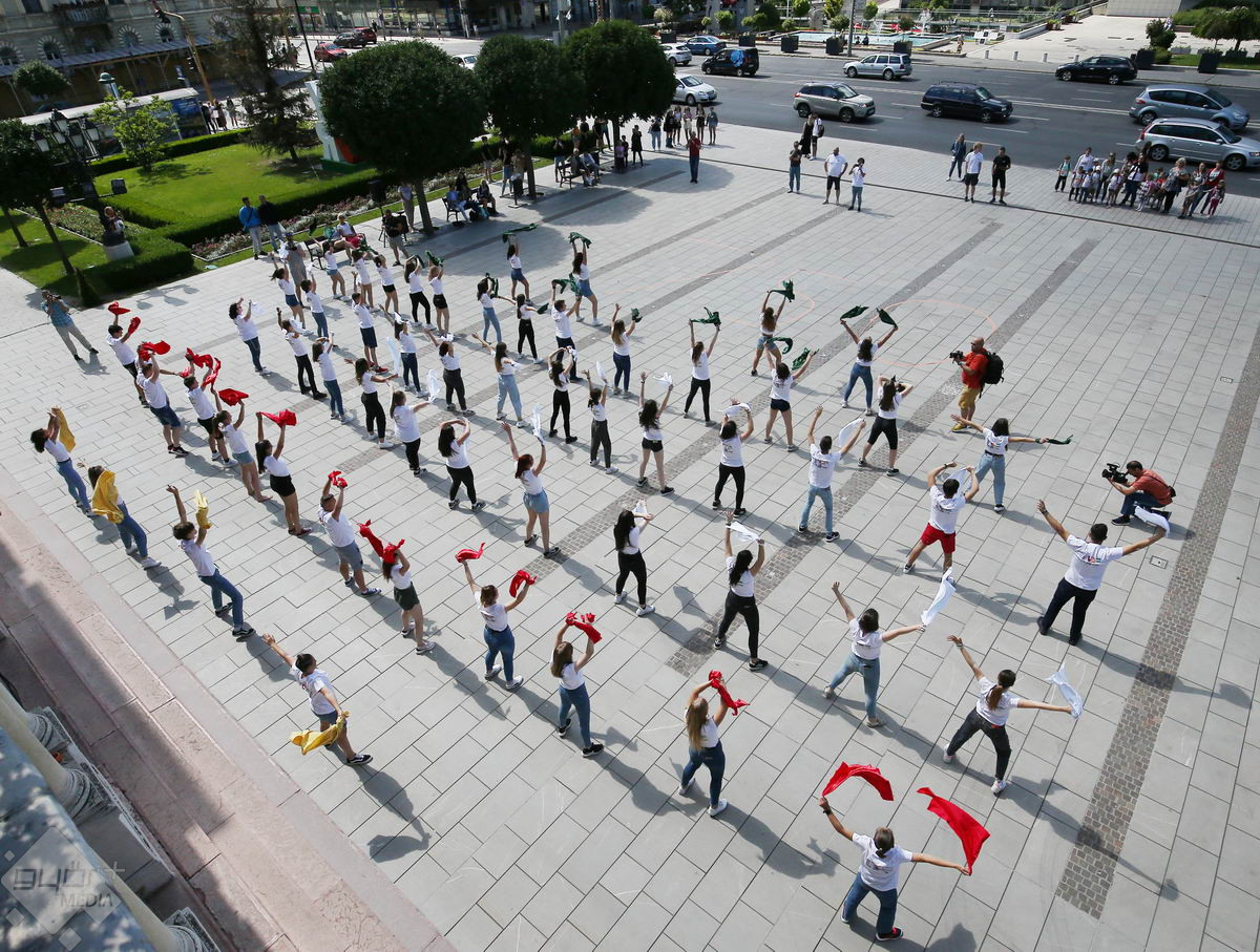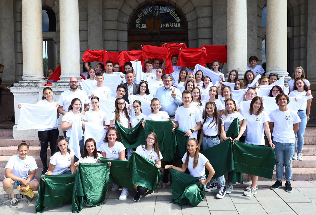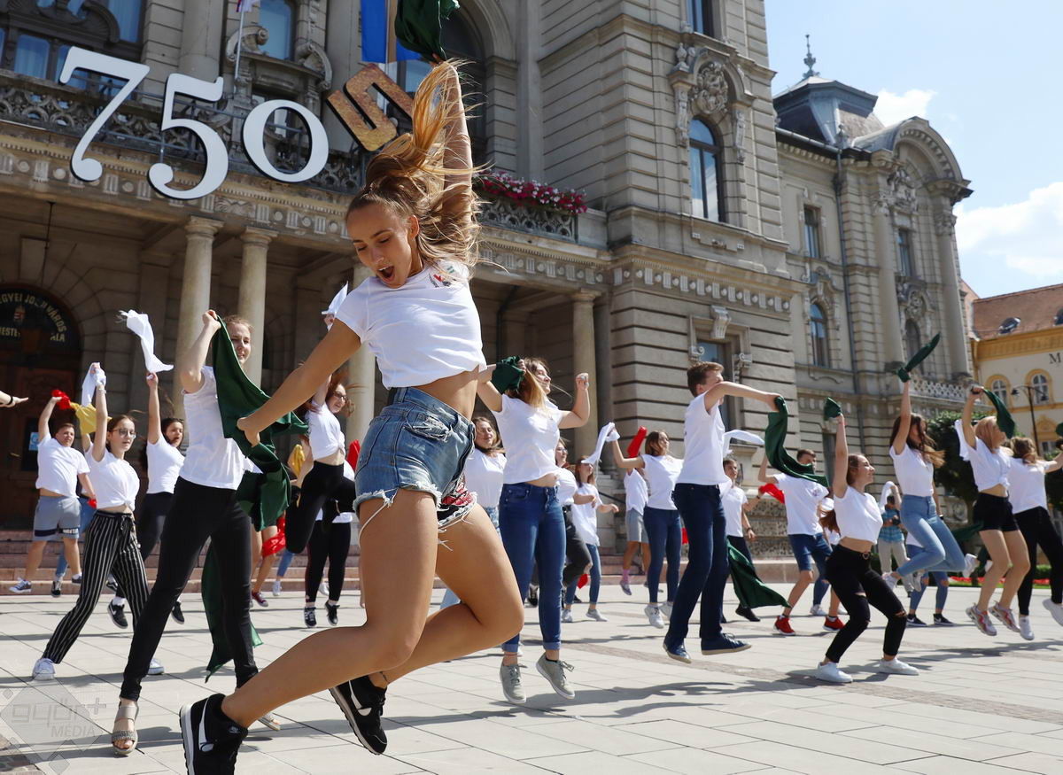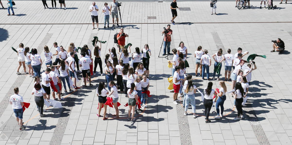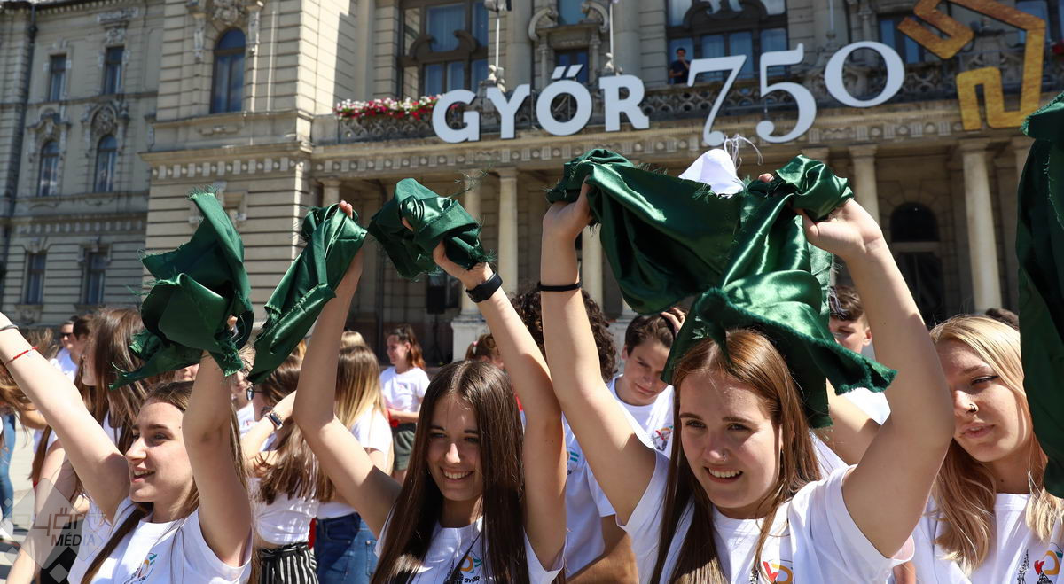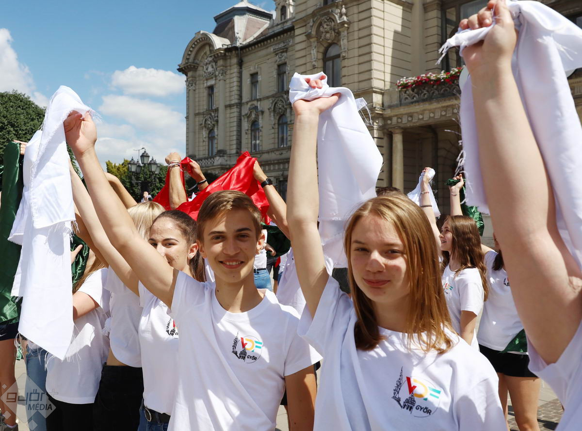 Piros, sárga, fehér és zöld zászlókkal integettek tánc közben a győri középiskolák diákjai. A Városi Diákfórum ötlete alapján készültek a villámcsődületre, közel hetvenen.