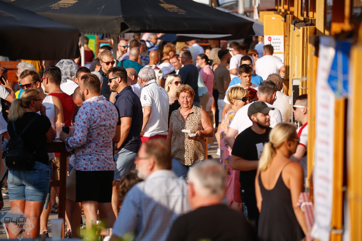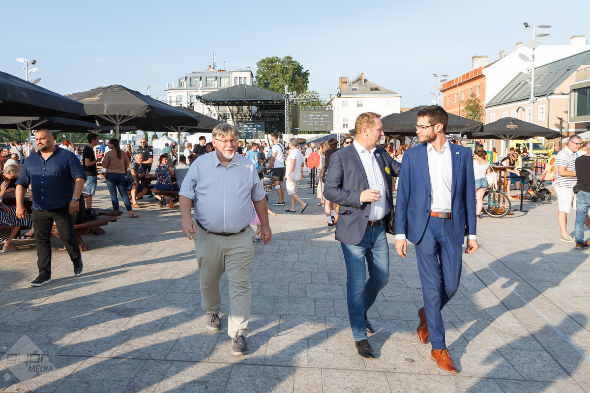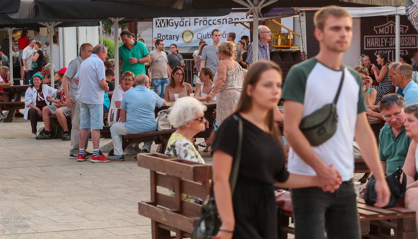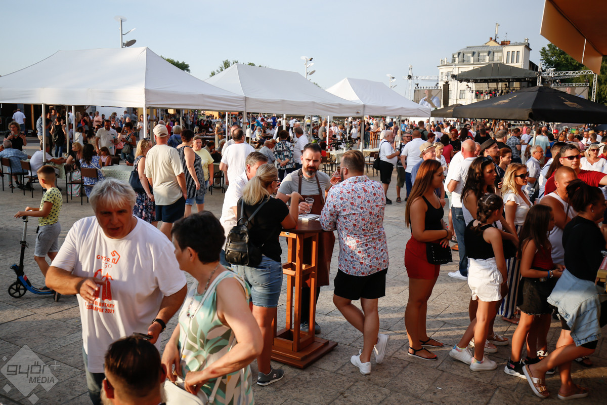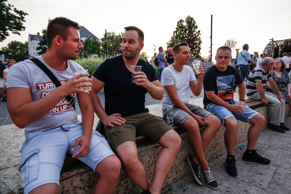 „Kevés bor, sok szóda. Ebben a nagy melegben így igyuk a fröccsöt, hogy oltsuk a szomjunkat”– ajánlotta dr. Dézsi Csaba András polgármester a XVI. Győri Fröccsnapok péntek esti megnyitóján a Dunakapu téren.