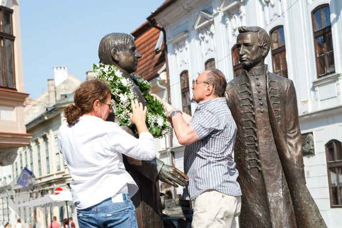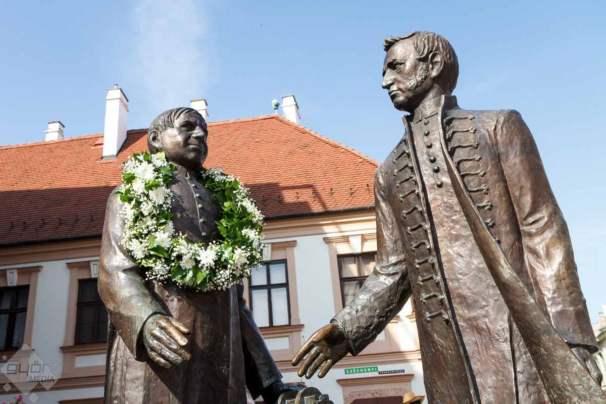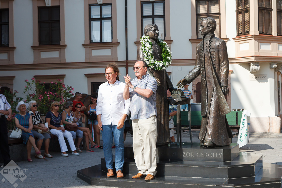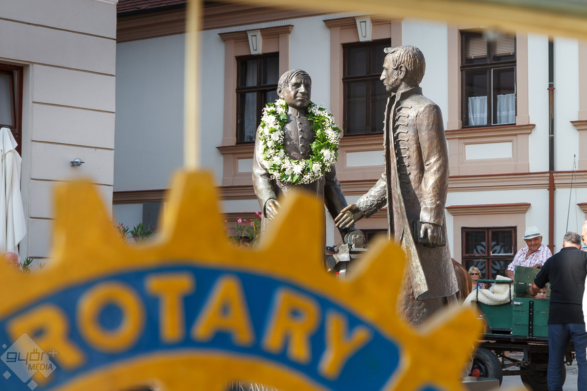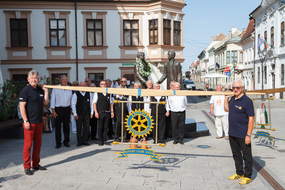 Hagyományosan Jedlik Ányos szobrának megkoszorúzásával indult pénteken a programsorozat, ahol Nyakas Szilárd, rádiós, író arról beszélt, hogy Jedlik Ányos, a magyar tudományos élet Robinsonja volt, egymaga építette technikai eszközeit, készítette el többek között a szódavizet, de nyelvújító is volt, mindent megoldott. Léggömb, kirakat eresz – többek között ezeket a szavakat is ő alkotta, amiről kevesen tudnak. „Jedlik nyakába” a virágfűzért dr. Horváth József, a Rotary Club Győr alapítója és a club soros elnöke Tóth Virgil akasztotta, a Nyúli Dalárda nótázásával kísérve.