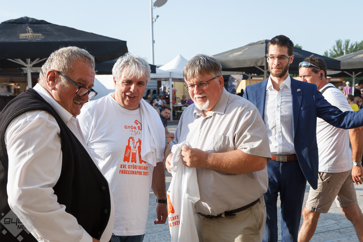 Tóth Virgil a leggyőribb fesztiválnak nevezte a Fröccsnapokat, és felelevenítette, hogy a fröccs Győrben született, Fóton keresztelték és keresztapja Vörösmarty Mihály. A Rotary a várossal közösen 16. alkalommal szervezi meg Fröccsnapokat, amely jótékony célokat szolgál, a Kazinczy Szép Magyar Beszéd verseny és díjazottjai mellett cserediák programokat és a hajléktalanok étkezést is támogatják a befolyt összegből. ”Fogyasszanak és adakozzanak!„