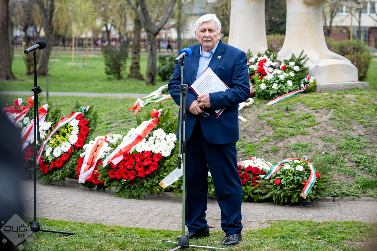 Az ünnepségen beszédet mondott még Balogh József, korábbi polgármester és Jeszenszky Géza, egykori külügyminiszter is. Az ünnep hangulatát a Széchenyi István Egyetem Művészeti Karának tehetséges hegedűművész hallgatói emelték előadásukkal. Az esemény végén pedig egy-egy szál szegfűvel, koszorúkkal és magyar, valamint lengyel nemzeti színű lobogóval készített gyertyákkal emlékeztek arra, hogy lengyel, magyar, két jó barát.