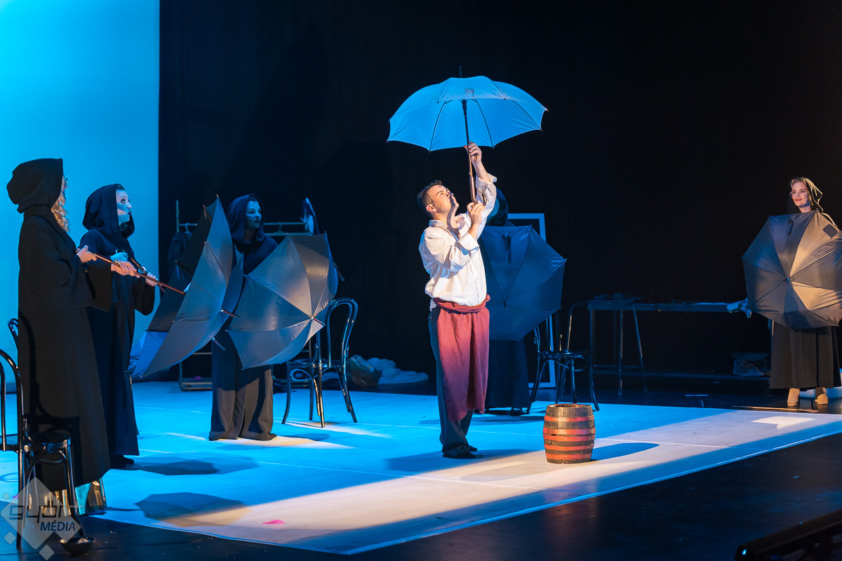 A harmadik induló, Szabó Sebestyén László a tavalyi évadban rendezett már a Kisfaludy Teremben, akkor Kormos István klasszikusát, a Pincérfrakk utcai cicák történetét álmodta a különös térbe. Most igazi womanpower-t kapott maga mellé, Agócs Judit és csapata nemcsak prózában, de táncban és énekben is bizonyított. Urbán-Szabó Fanni, Csapó Borbála, Gyöngyössy Csenge és Buvári Lilla, valamint Rovó Péter táncművész egy összművészeti előadással készültek. A darab témája bizonyára Bohumil Hrabalt is megörvendeztette volna, hisz a Sörválasz című előadás a folyékony nedű dicsőséges múltjáról és jelenéről mesélt.