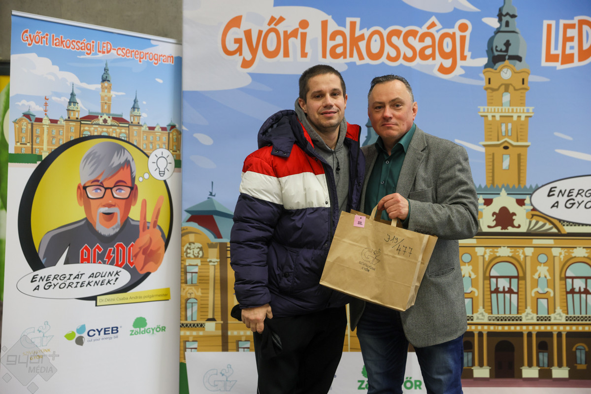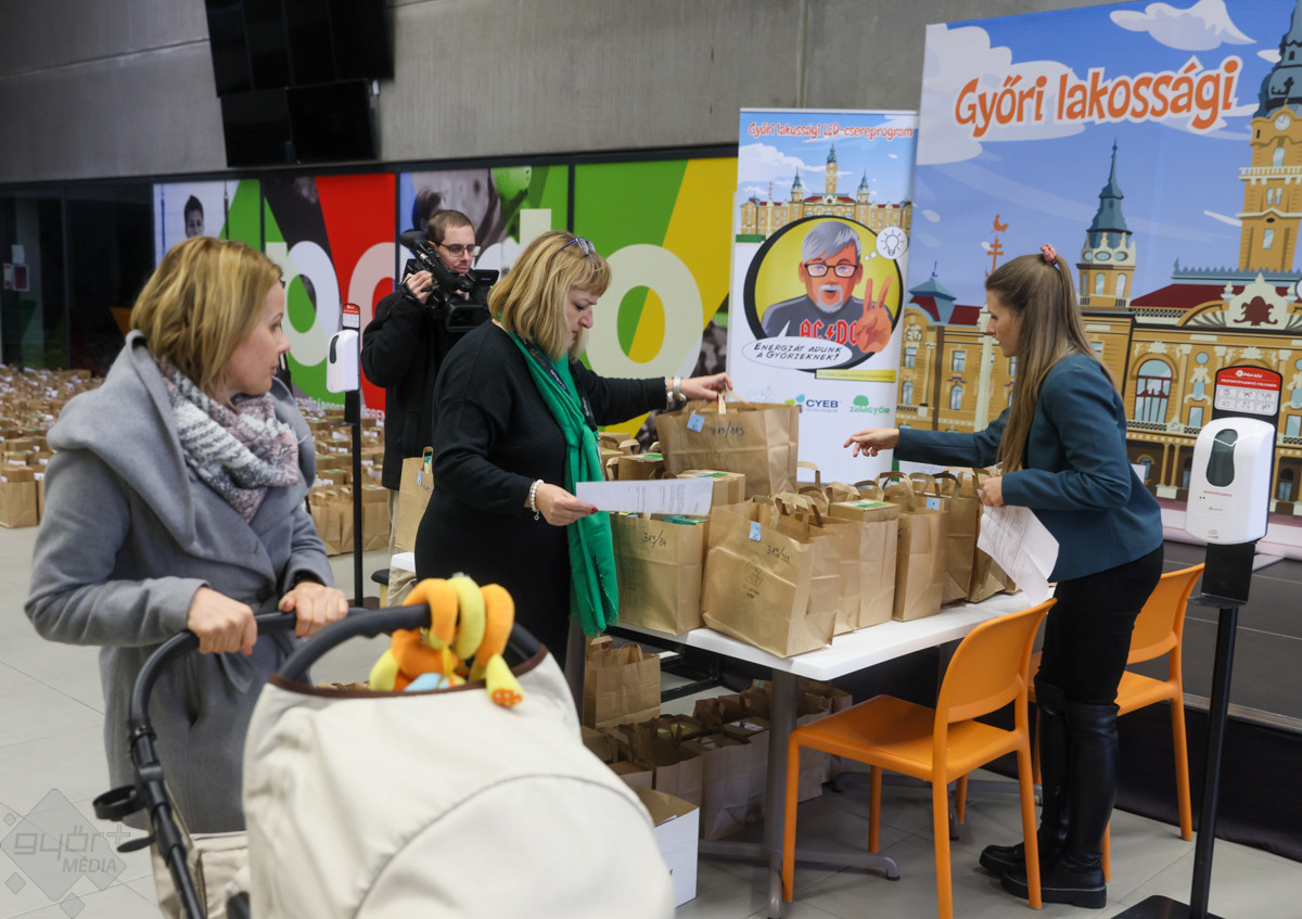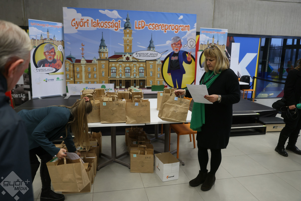 Az idei első eseményen Szeles Szabolcs alpolgármester adta át az izzókat a győrieknek, akik több tucat csomagot vettek át az Olimpiai Sportparkban.