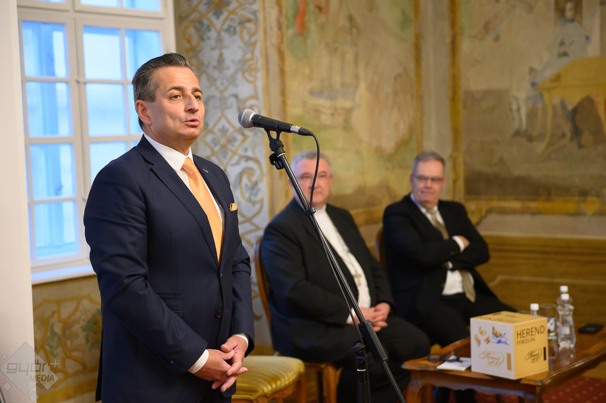 Fűke Géza, a kiállítás házigazdája, a Győri Filharmonikus Zenekar igazgatója pedig megtiszteltetésnek vette és örömét fejezte ki, hogy a zenekar működtetésében lévő 400 éves Zichy-palota adhat otthont a bicentenáriumi ünnepség nyitányának, a Herendi kiállításnak. Elmondta, hogy Győr mellett hazánkban csak Budapesten, Herenden, Fertődön, Velencén, Tihanyban, és Majkon lesz látható a tárlat. Az igazgató szólt azokról a párhuzamokról, kötődésekről is, amelyeket a Győri Filharmonikus Zenekar és a Herendi Porcelánmanukfatúra között fedezett fel. Ezek a minőség, a kiművelt tudás, az egyediség, a nemzetköziség, valamint az a bizonyos titkos recept.