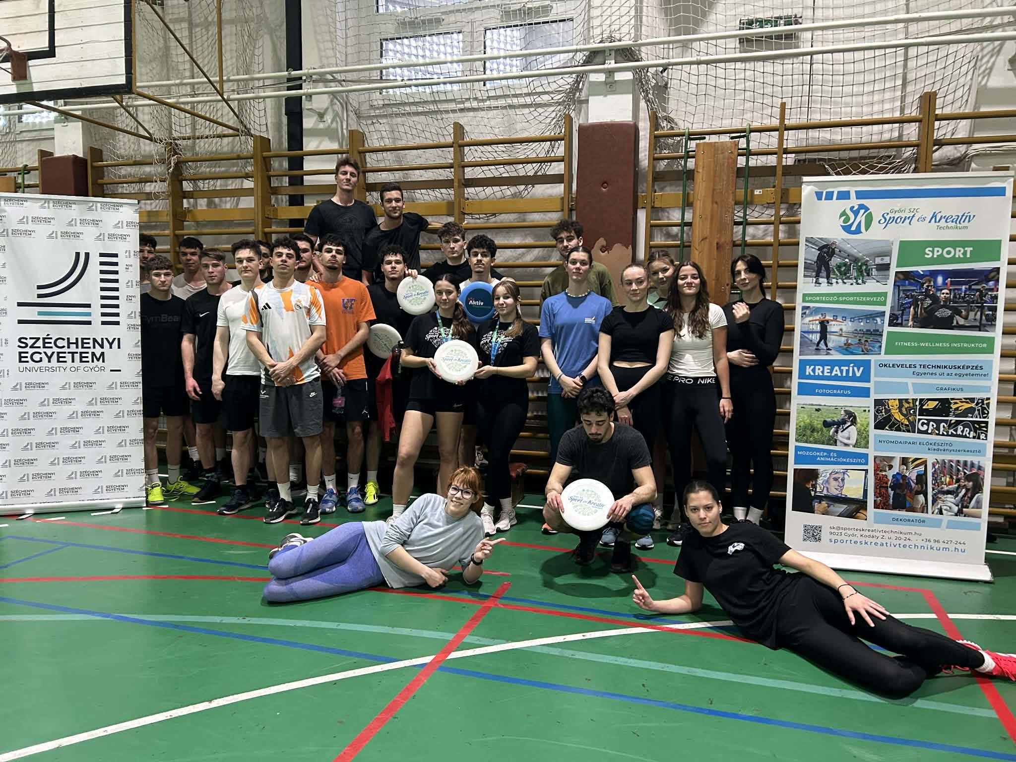 A technikum 13. évfolyamos sportedző–sportszervező tanulói közül ketten vállalták, hogy a rekreáció szakos egyetemistáknak tartanak frizbi órákat. A három alkalomból álló kurzuson az alaptechnikák, szabályok és taktikai elemek elsajátítása volt a cél.