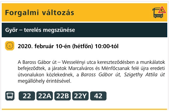 Az ideiglenes menetrendi változások a 22, 22a, 22b, 22y és 42-es járatokat érintették.
