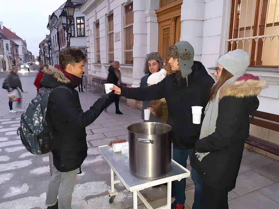 A gimnázium tanulói nem először szerveznek tea osztást, az elmúlt években az extra hideg időben kínáltak forró italt a téren.