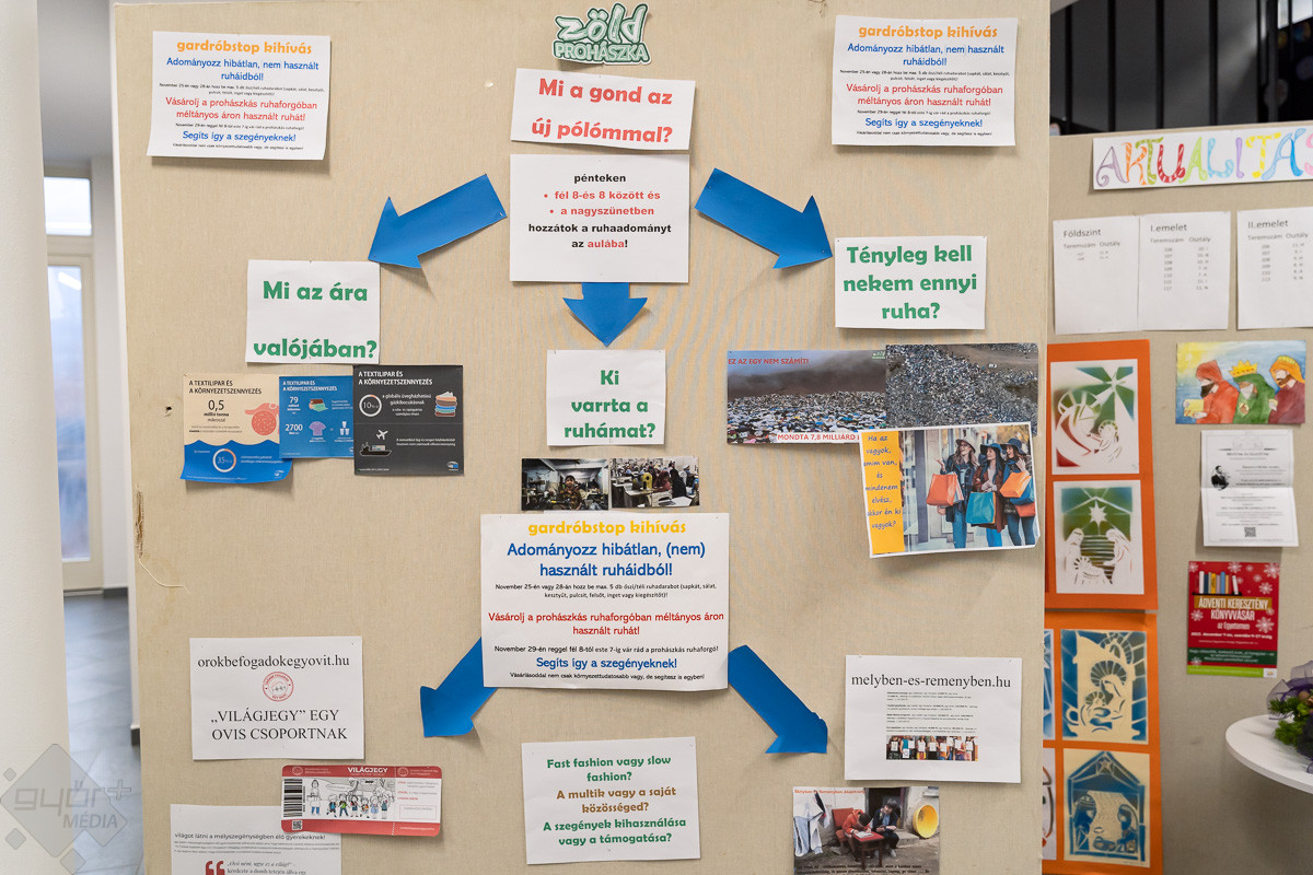 Berki Fanni, Demeter Abigél, Kovács Dóra, Zsebedics Júlia és Kaposi Boglárka arra kérték iskolatársaikat, hogy hozzanak be 5 olyan ruhadarabot a szekrényükből, ami hibátlan, nem vagy alig használt, de valamiért mégsem tartozik a kedvenceik közé. Könnyen lehet, hogy másvalaki viazont pont erre vágyott. A ruhákból az iskola aulájában vásárt rendeztek, ahol 500, 1000, 1500 vagy 2000 forintos áron lehet megvásárolni a kiszemelt darabot. A vásárt a szülői fogadóóra napjára időzítették, így aztán egész nap nagy volt a forgalmuk. Óraközi szünetekben a diákok, délután pedig a szülők nézegettek és vásároltak. A befolyt összeget jótékony célra használják fel, s hogy pontosan mire, azt az osztályokban leadott szavazatok száma dönti el. Vagy egy mélyszegénységben élőket támogató alapítványt, vagy egy óvodai kirándulást szeretnének finanszírozni belőle.