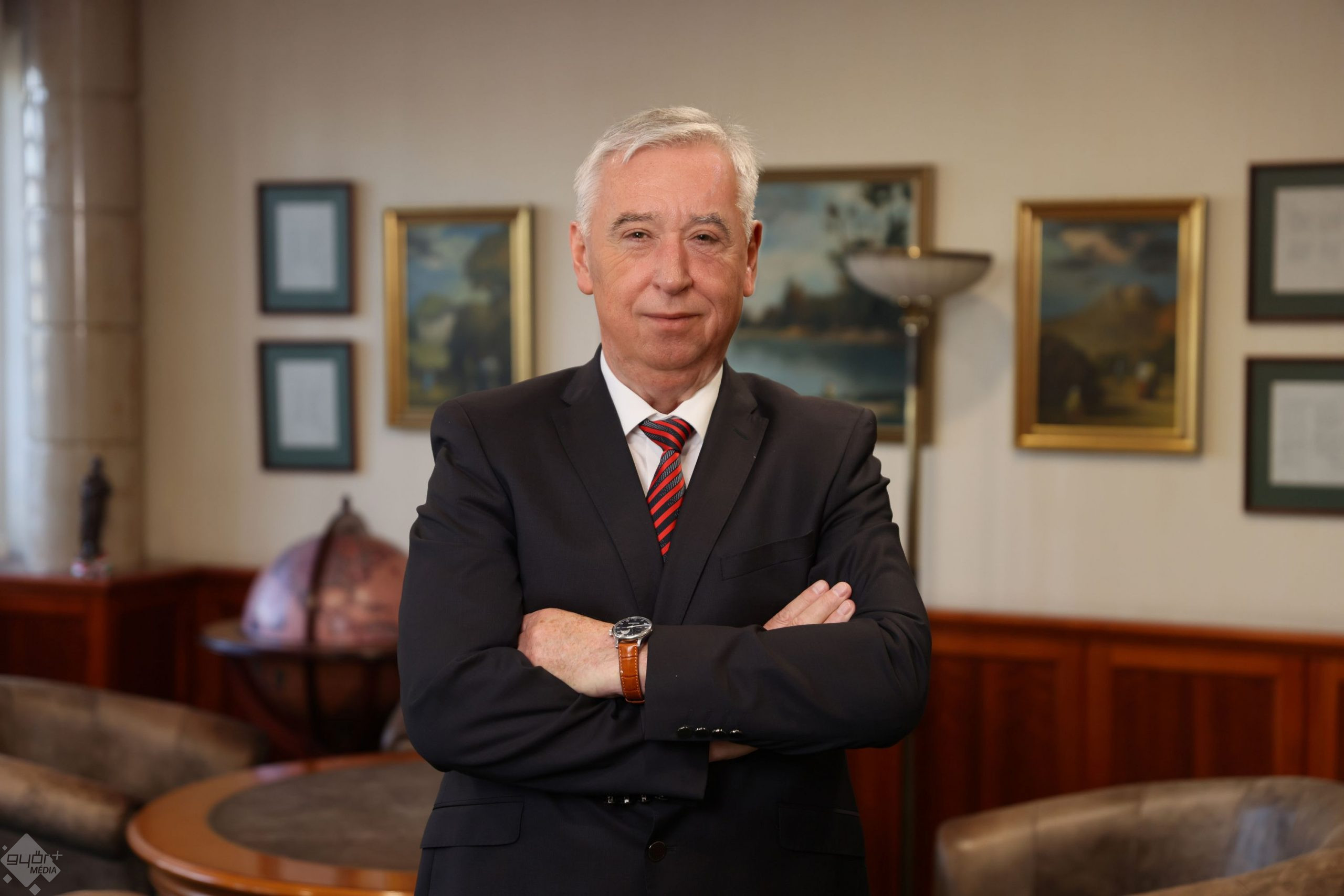 Büszkeségét jól jelzi az a 400 oldalas kötet, melyben a városnak végzett munkálatait – köztük a Győrnek adott támogatásait, s a közérdekű kötelességvállalásait –, valamint munkájuk elismerésének okleveleit, újságcikkeit őrzi. Véletlenszerűen kinyitom a nyomdai kiadványt a közepe táján. Ott éppen egy oklevél tudatja, hogy 2010-ben Győrben neki ítélték oda az év lokálpatriótája címet.