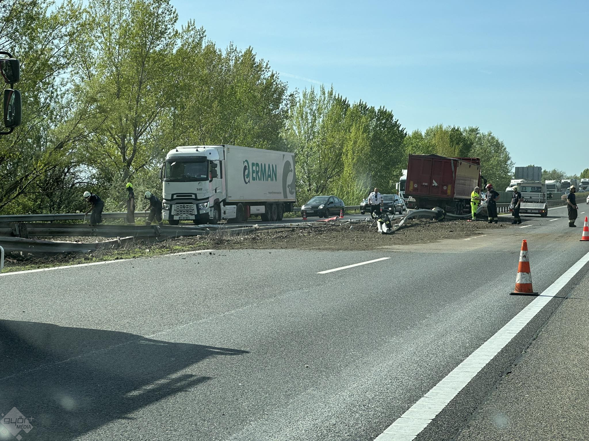 Földet szállító teherautó hajtott a szalagkorlátnak az M1-es autópálya 122-es kilométerénél, Győrújbarát térségében. A baleset a belső sávban történt, és a pálya mindkét oldalát érintő torlódásra kell számítani. A Budapest felé vezető oldalon 129-es lehajtónál érdemes letérni, a Bécs felé haladók a 119-esnél hagyják el a pályát, hogy elkerüljék a dugót.