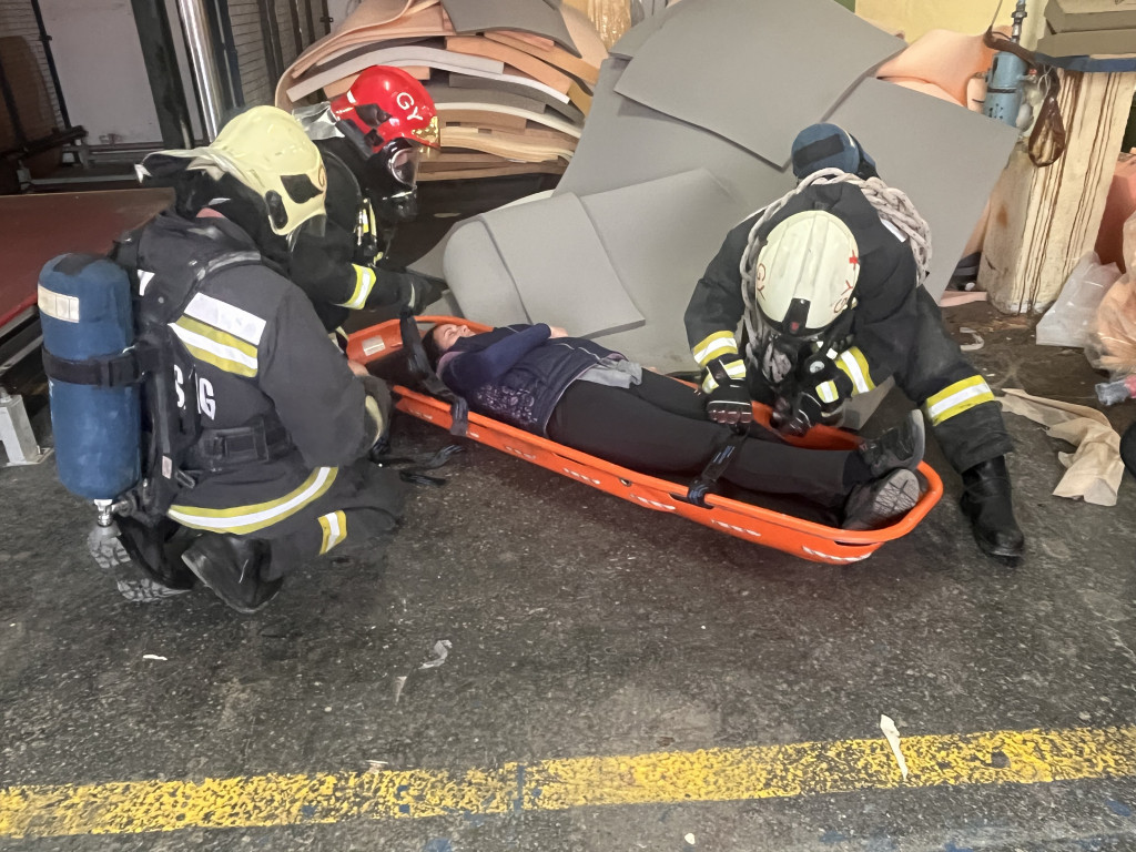 Szituációs gyakorlatot tartottak a győri tűzoltók egy helyi, bútor- és matracgyártó üzemben.