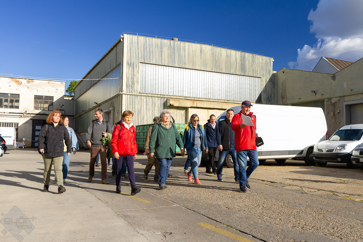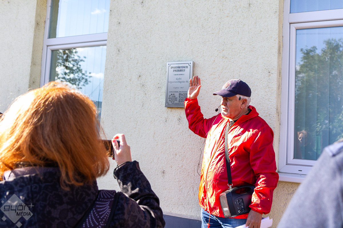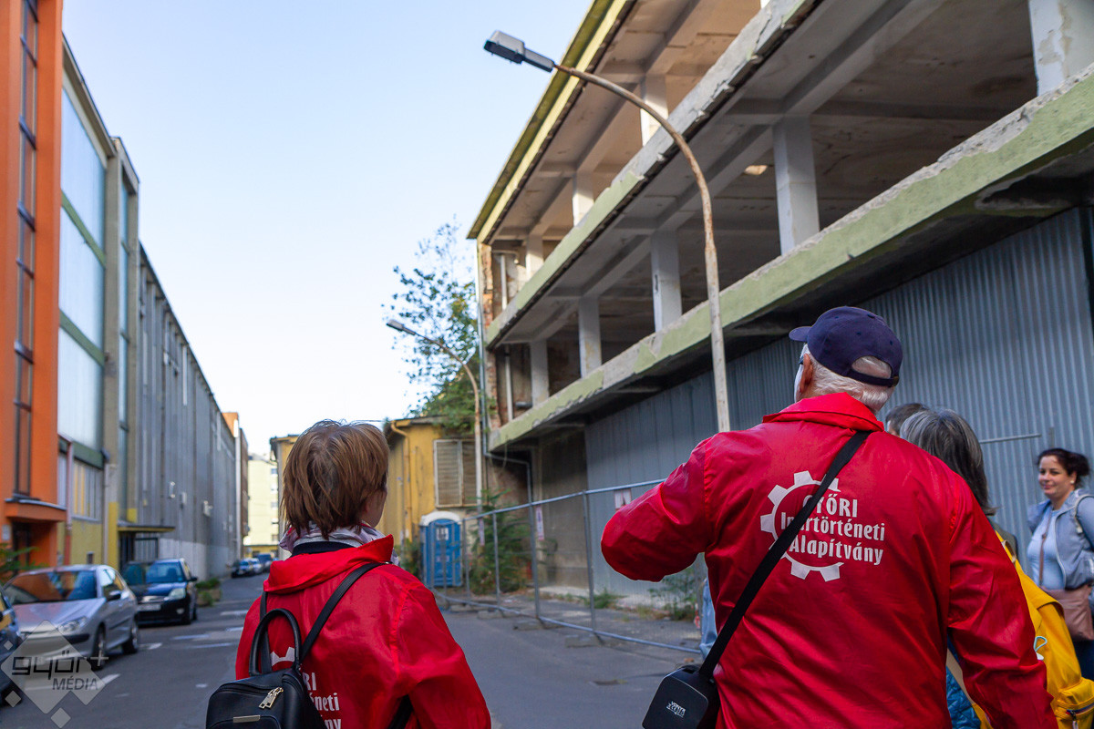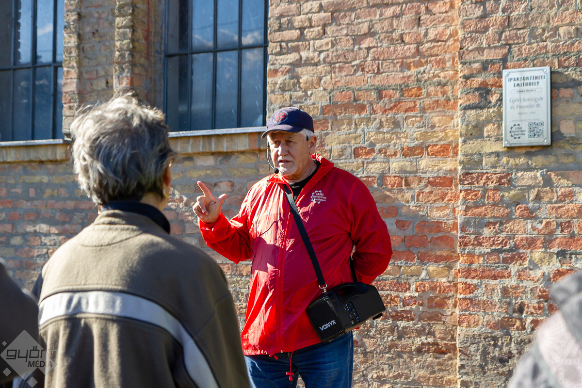 A gyalogtúra kezdőpontja az Árkád melletti Vagongyári emlékhely volt, innen indult a Győri Ipartörténeti Alapítvány elnökének, Miklósy Lajosnak az idegenvezetése. “Ez egy 6 kilométeres túra lesz. A régi ipari telepnek a nagy részét be tudjuk járni. Nyolc céget nézünk meg, melyek közül valamelyik még létezik, valamelyik már nem.”- számolt be a Győr Plusz Médiának a túravezető.