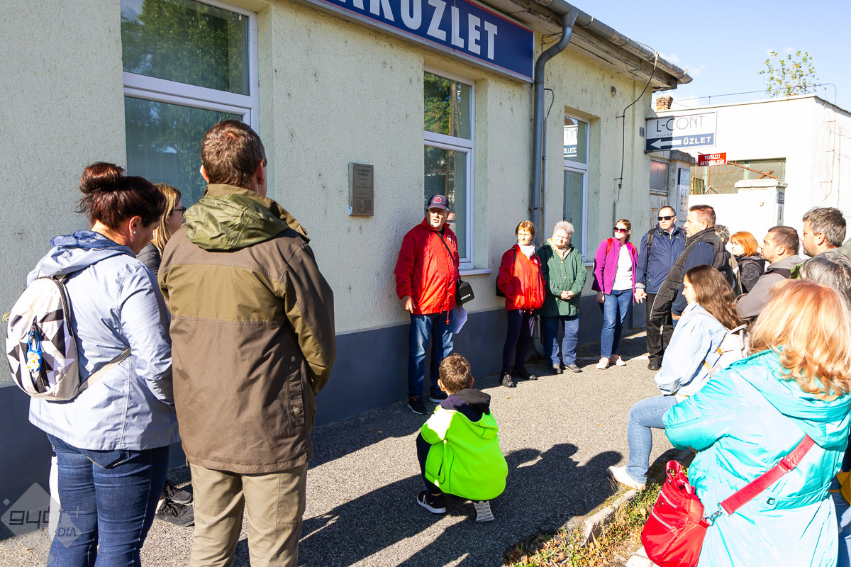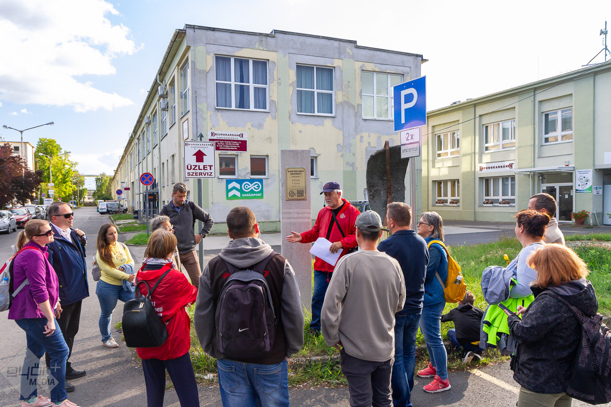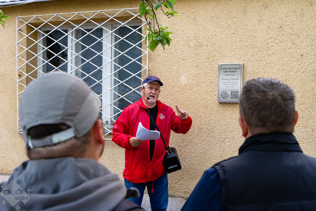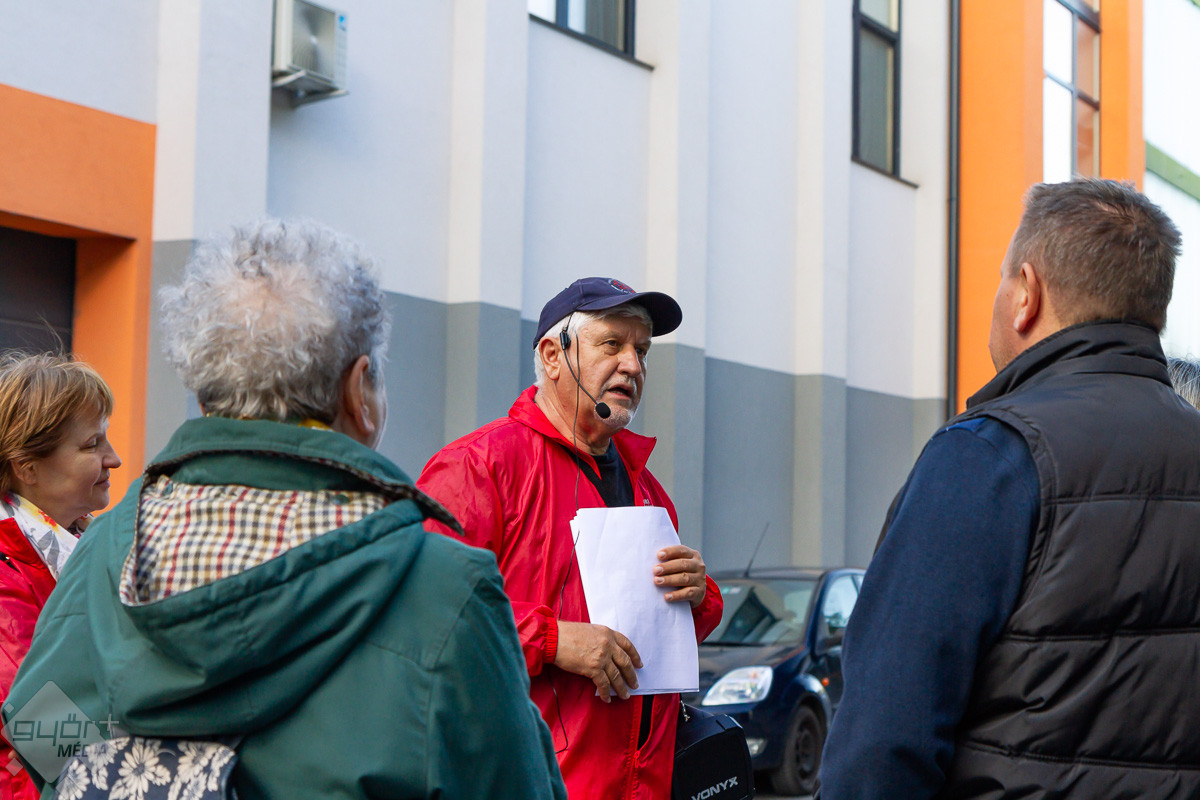 A gyalogtúra kezdőpontja az Árkád melletti Vagongyári emlékhely volt, innen indult a Győri Ipartörténeti Alapítvány elnökének, Miklósy Lajosnak az idegenvezetése. “Ez egy 6 kilométeres túra lesz. A régi ipari telepnek a nagy részét be tudjuk járni. Nyolc céget nézünk meg, melyek közül valamelyik még létezik, valamelyik már nem.”- számolt be a Győr Plusz Médiának a túravezető.