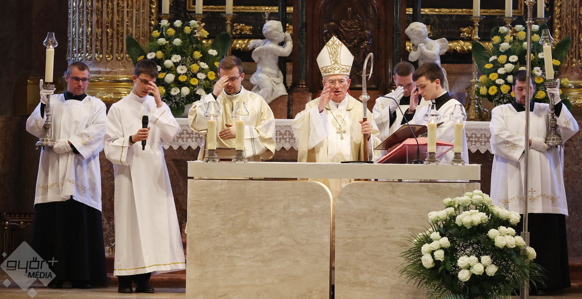 Gyémántmisét mutatott be pappá szentelésének 60. évfordulója alkalmából Pápai Lajos emeritus megyés püspök vasárnap a győri Nagyboldogasszony-székesegyházban.