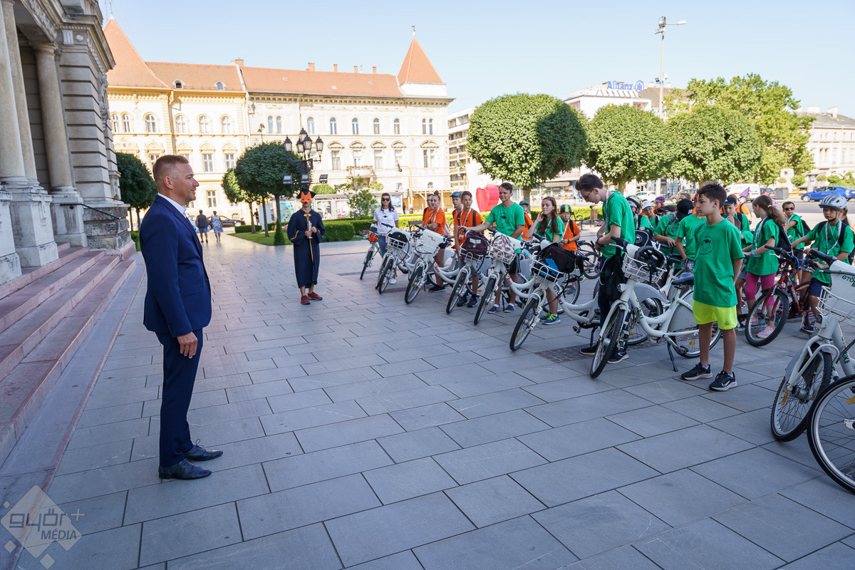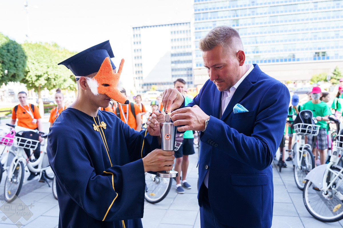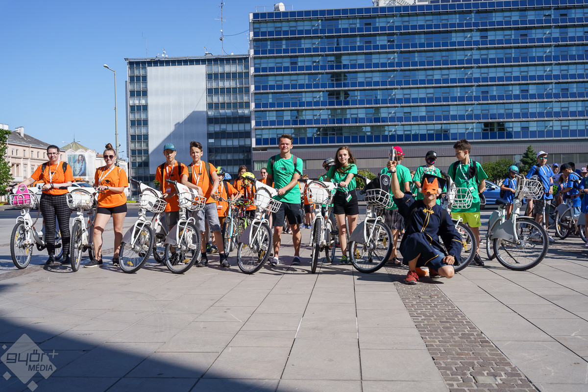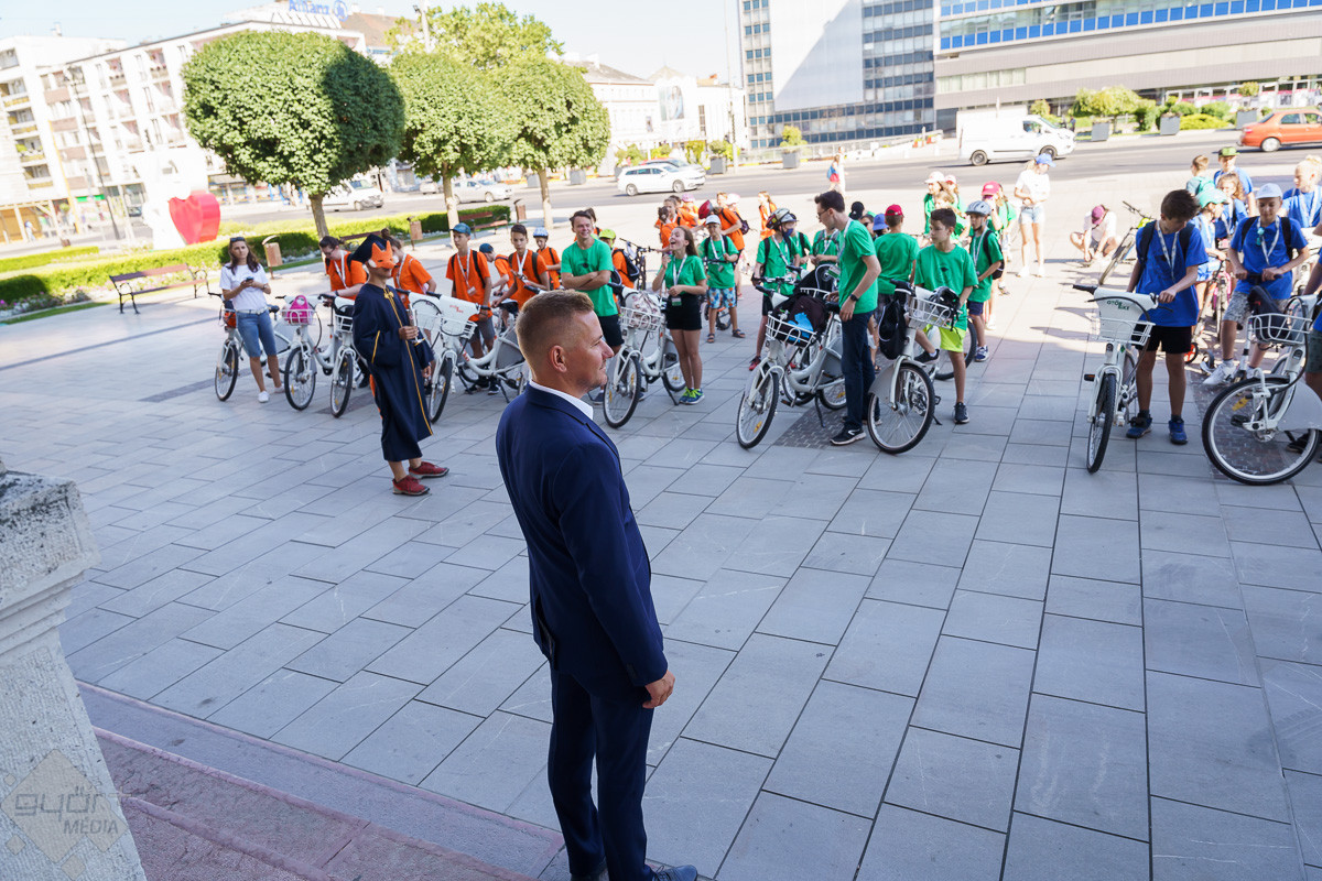 Erről hétfői Híradónkban már beszámoltunk, most azonban az ifjú egyetemisták a Városházára is ellátogattak, hogy aztán többnyire Győr Bike-okkal, felfedezzék a történelmi belváros legszebb részeit. A Városháza előtt a sportot is felügyelő alpolgármester fogadta a fiatalokat, akiknek azt mondta, a lehető legjobb nyári elfoglaltságot választották erre a hétre, mert a gyerekegyetemen rengeteget tanulhatnak, ráadásul a várost is sokkal jobban megismerik.