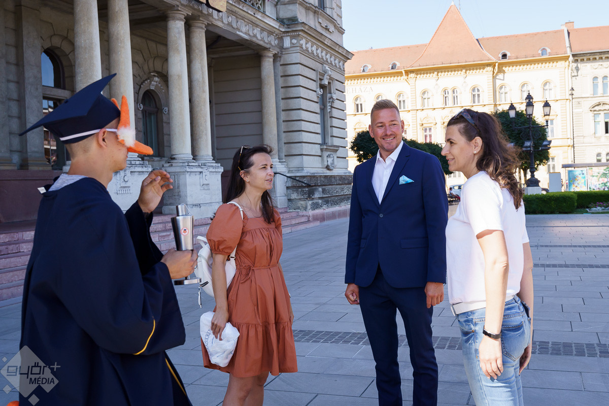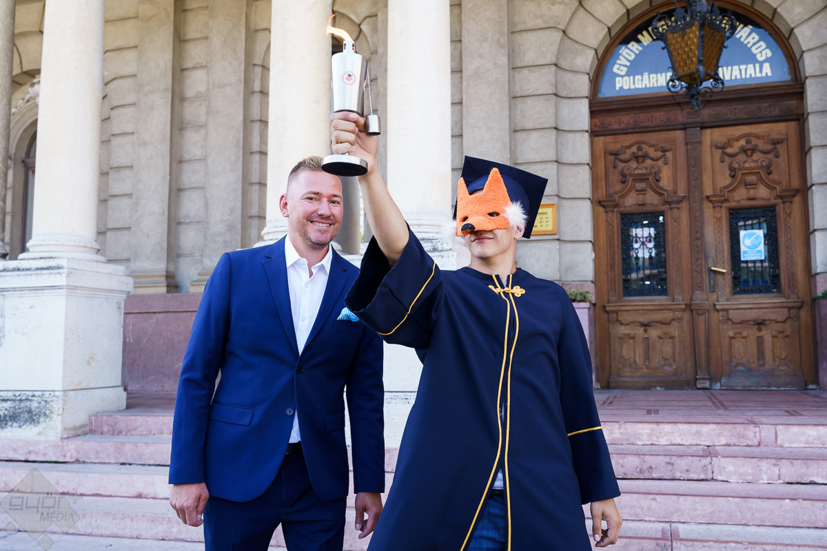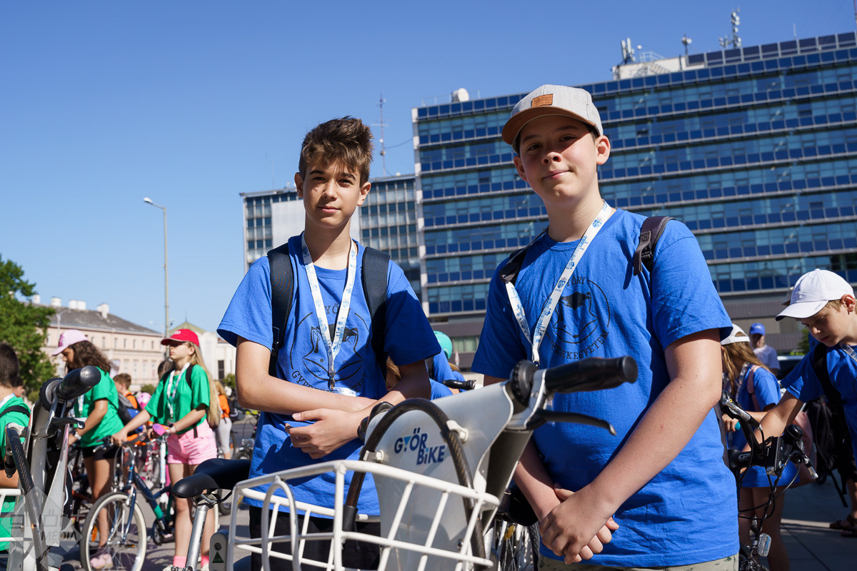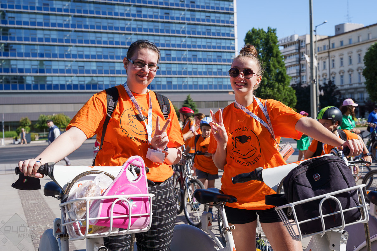 Erről hétfői Híradónkban már beszámoltunk, most azonban az ifjú egyetemisták a Városházára is ellátogattak, hogy aztán többnyire Győr Bike-okkal, felfedezzék a történelmi belváros legszebb részeit. A Városháza előtt a sportot is felügyelő alpolgármester fogadta a fiatalokat, akiknek azt mondta, a lehető legjobb nyári elfoglaltságot választották erre a hétre, mert a gyerekegyetemen rengeteget tanulhatnak, ráadásul a várost is sokkal jobban megismerik.
