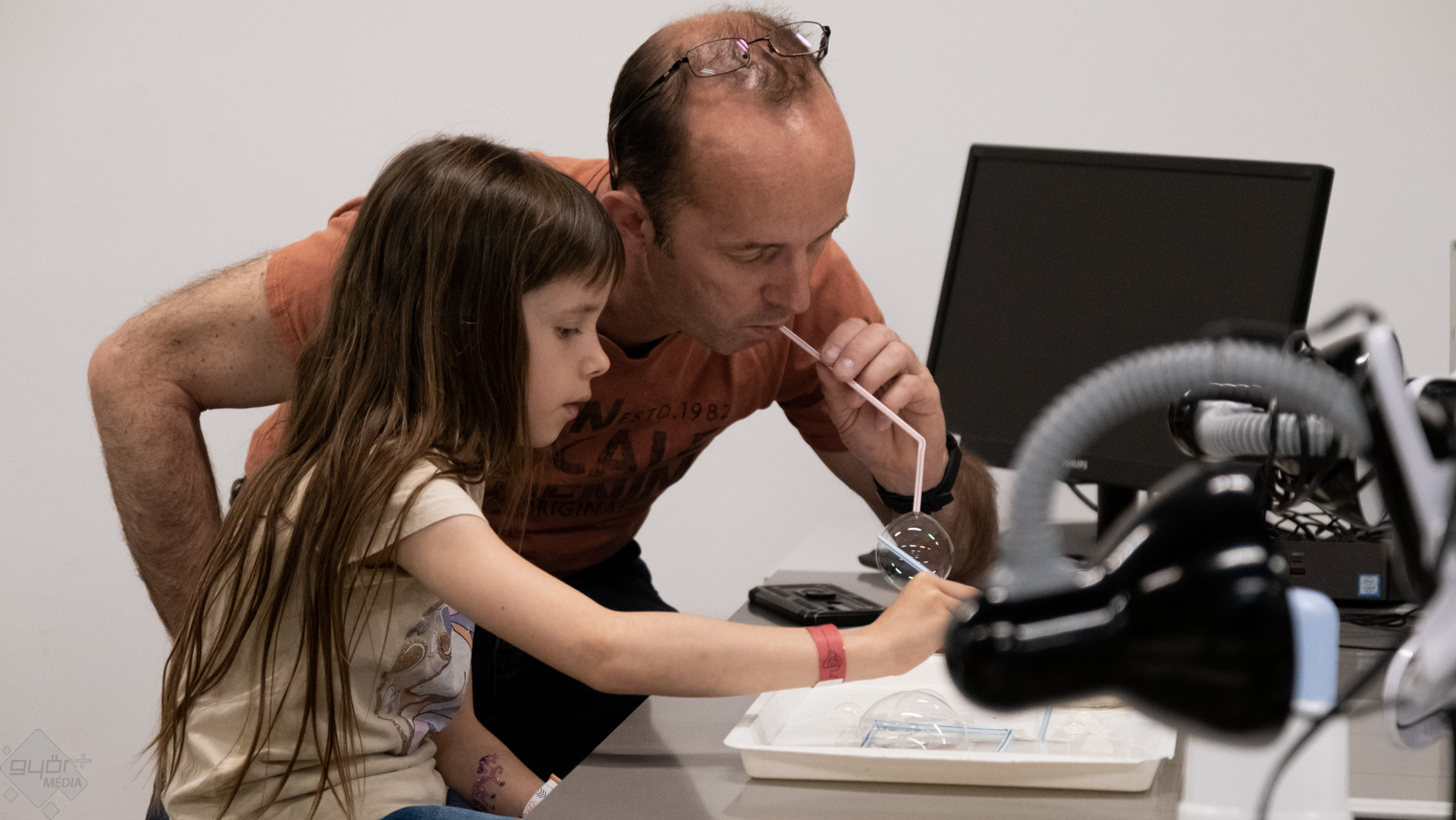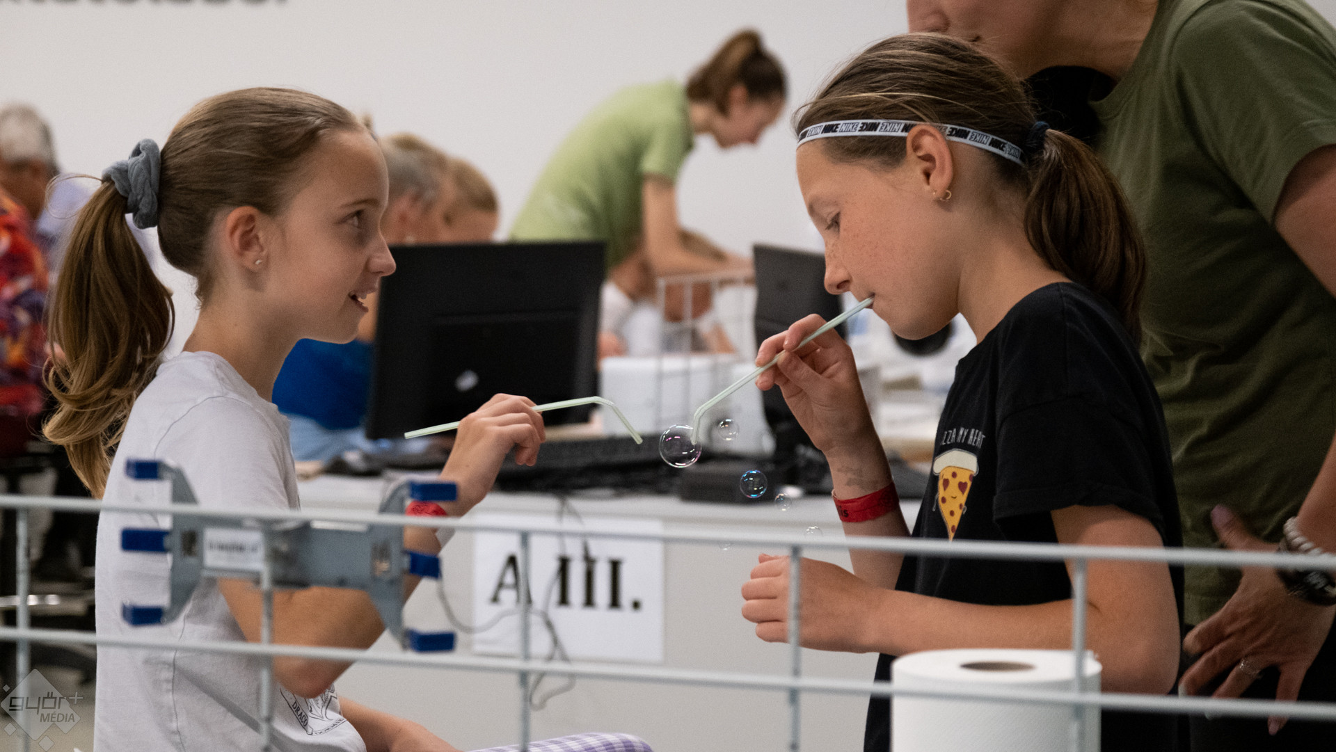 Reggel 10-től egészen délután 5-ig kíváncsi, boldog gyerekektől és felnőttektől volt hangos a Mobilis. A mai nap egésze a kísérletekről és a mókáról szólt: kincsvadászat Micro:bit-tel, érdekes kísérletek játékokkal és szappanbuborékokkal.