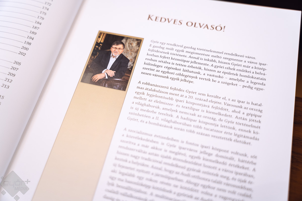 Dr. Dézsi Csaba András polgármester örömmel forgatta a frissen megjelent kötetet és arról beszélt, hogy ez a könyv is Győr erejét mutatja. Felidézte: a város 750 évvel ezelőtt kapta meg azt a jogot, hogy adót szedhessen be, és az iparból komoly bevétele is származott. Beszélt arról is, hogy elődeink ipartelepítési koncepciói megalapozottak voltak, hagyománnyá vált és a mai napig nem szakadt meg. „Nekem, mint polgármesternek is feladatom, hogy további ipart telepítsünk a városba, ezen is dolgozunk a háttérben.”– hangsúlyozta dr. Dézsi Csaba András.