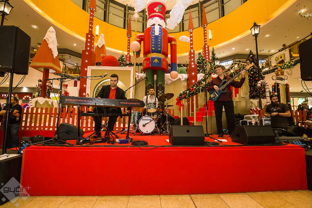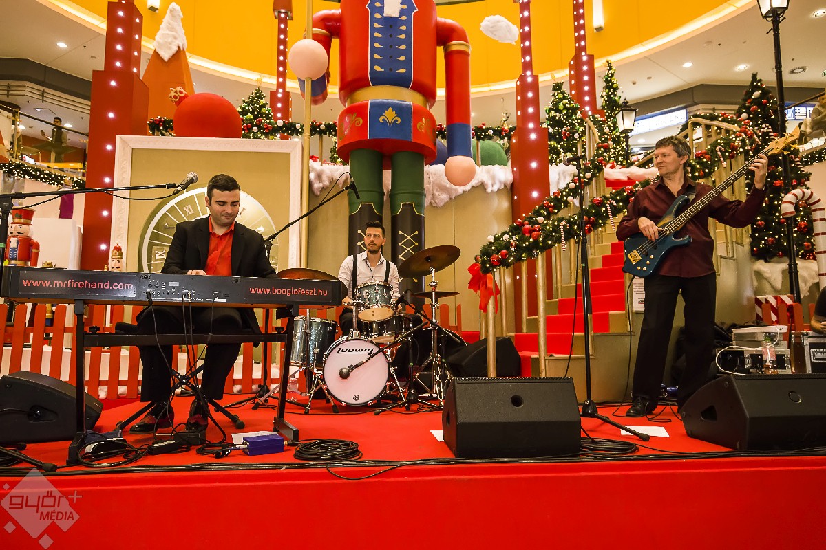 Az ingyenes Boogie Christmas fesztiválnyitó koncertet csütörtökön tartották, s fellépett a házigazda Dániel Balázs Trió. A tőlük megszokott hangszeres virtuozitás és vidámság hamar magával ragadta az Árkád Bevásárlóközpont látogatóit.