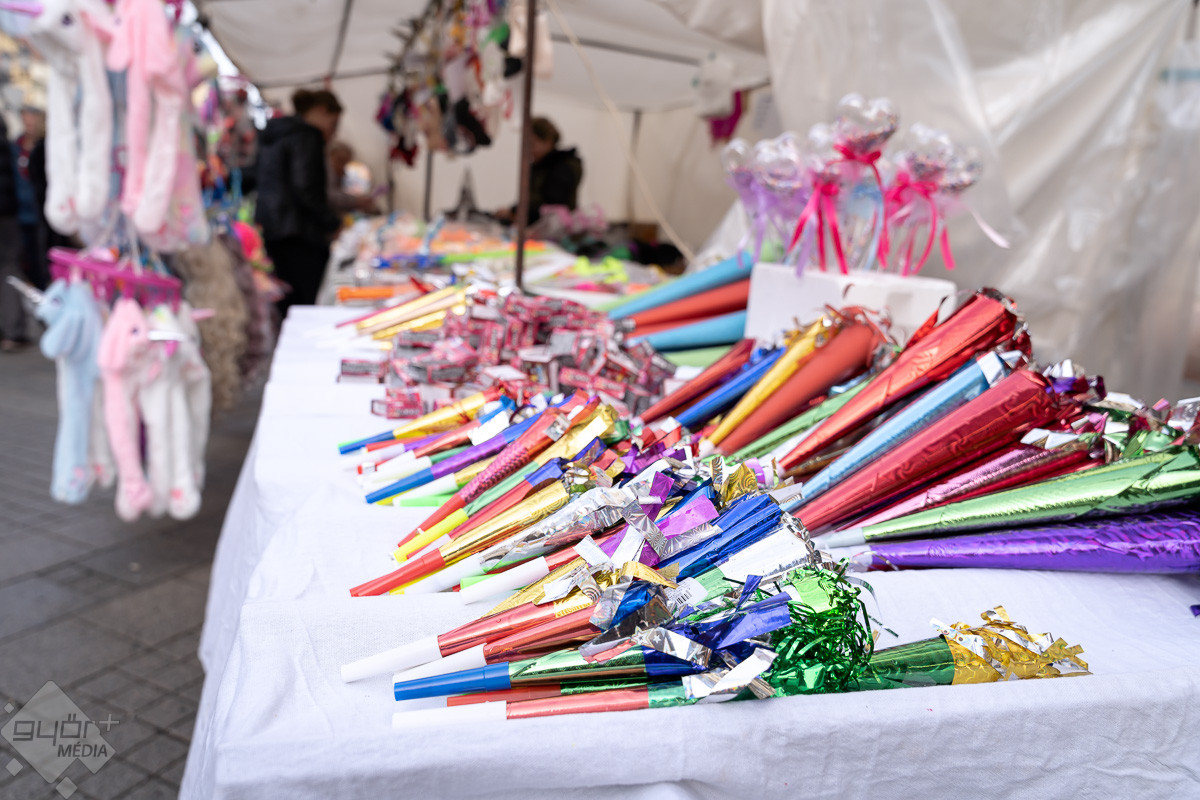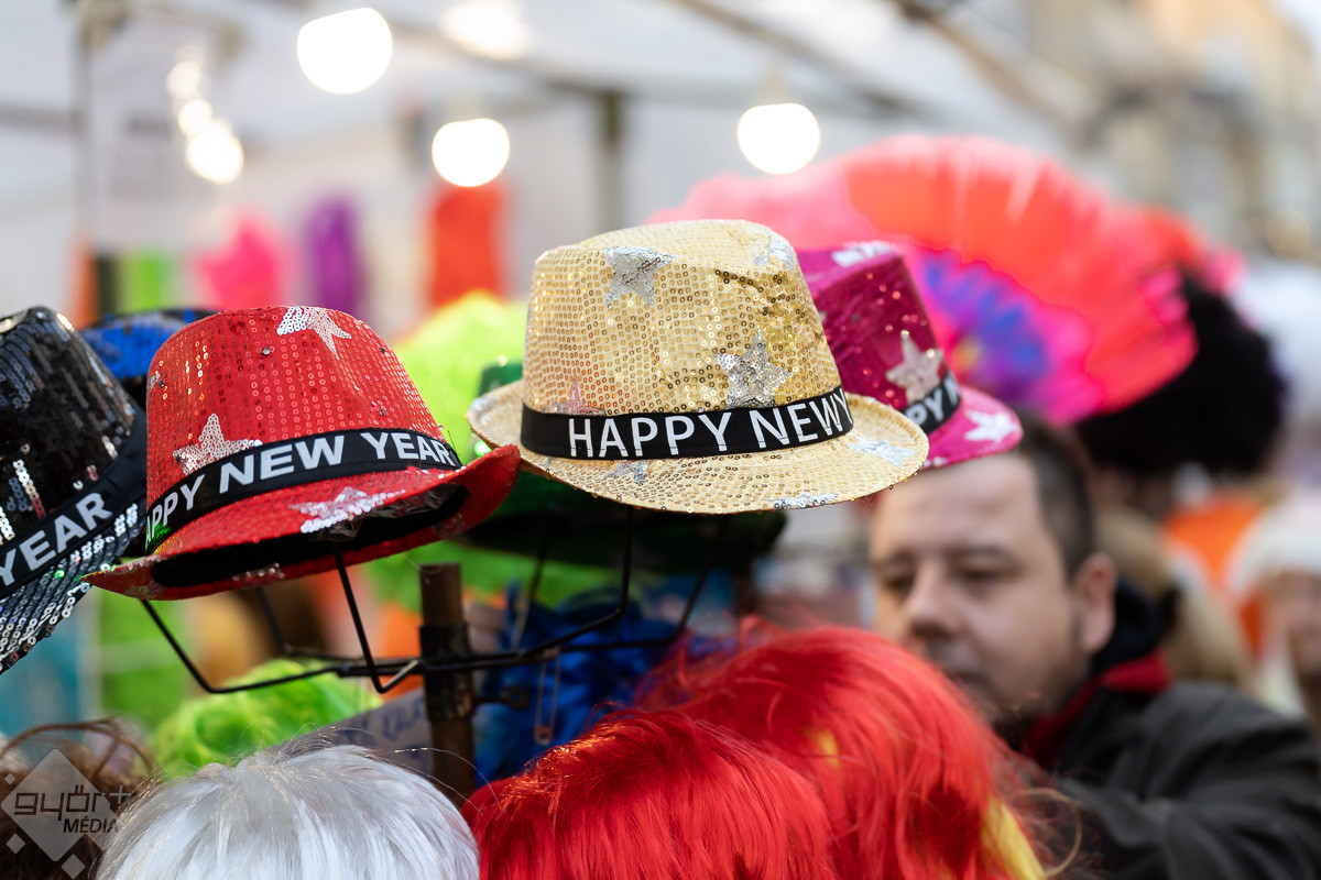 A visszaszámlálás végérvényesen elkezdődött, néhány óra még, és elköszönünk a 2022-es évtől, hogy elinduljon a 2023-as. A győri sétálóutcán már napok óta beszerezhetők a bulizás kellékei, a Dunakapu téren pedig december 31-én délután családi programok várták az érdeklődőket.