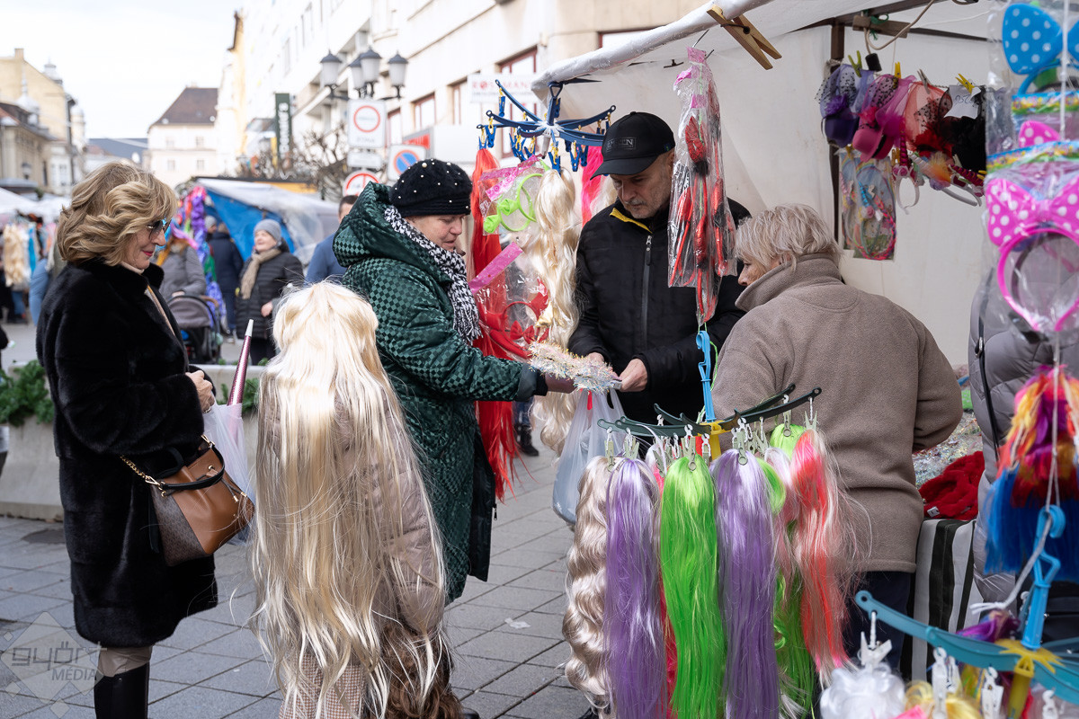 A Baross utcai forgatagban megtalálható minden, ami az ünnepléshez kell: a színes parókák évek óta kedvencek, de népszerűek az egyre élethűbb vagy éppen ijesztőbb álarcok is. Aki zörögni, csörögni, dudálni és kürtölni szeretne, az is válogathat kedvére a kínálatban, szinte nincs olyan partykellék, amit ne lehetne beszerezni. Az ördögpatron még mindig a gyermekek kedvence, s szépen fogynak a szerencsepénzek, a szerencsemalacok és a négylevelű lóherék is. Kívánjuk, hogy hozzák is meg a várva várt eredményt!