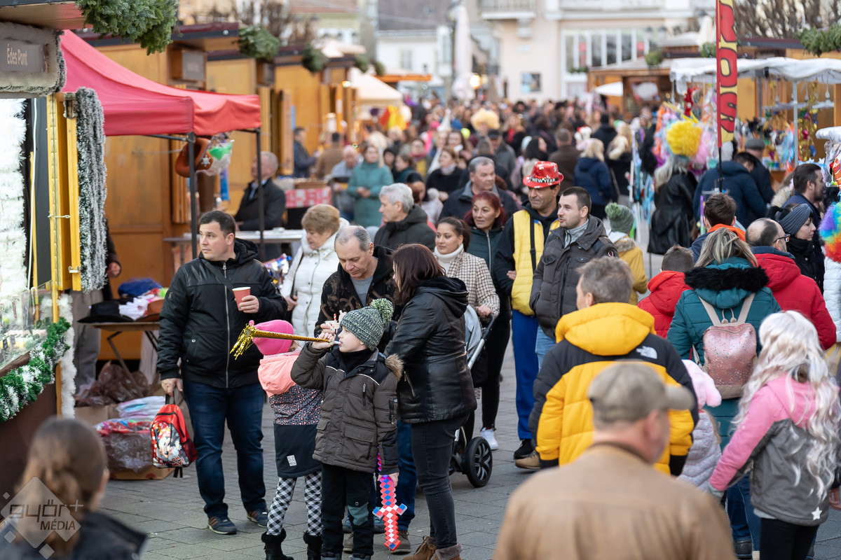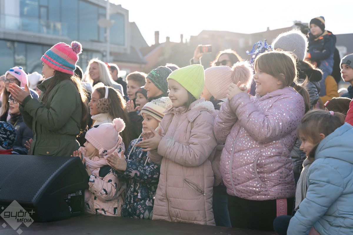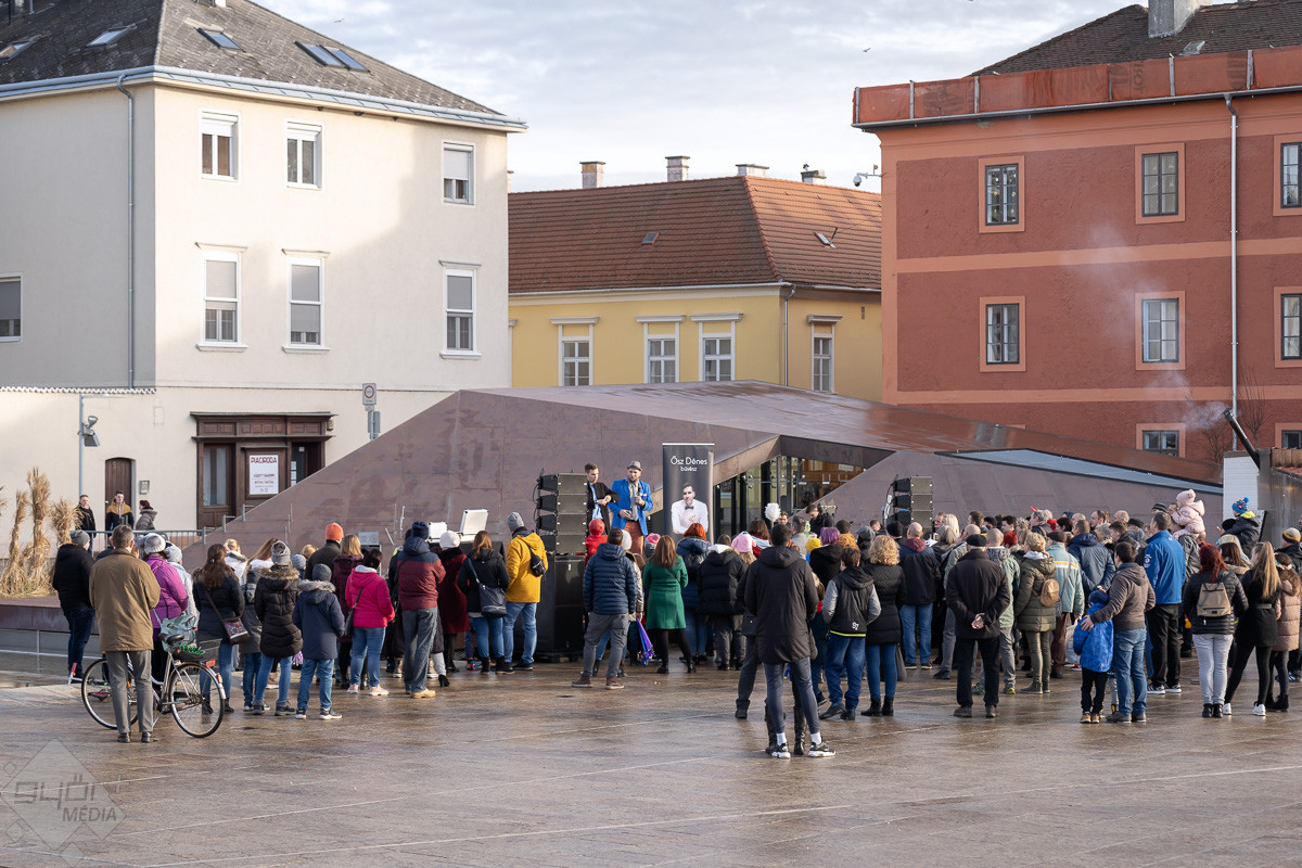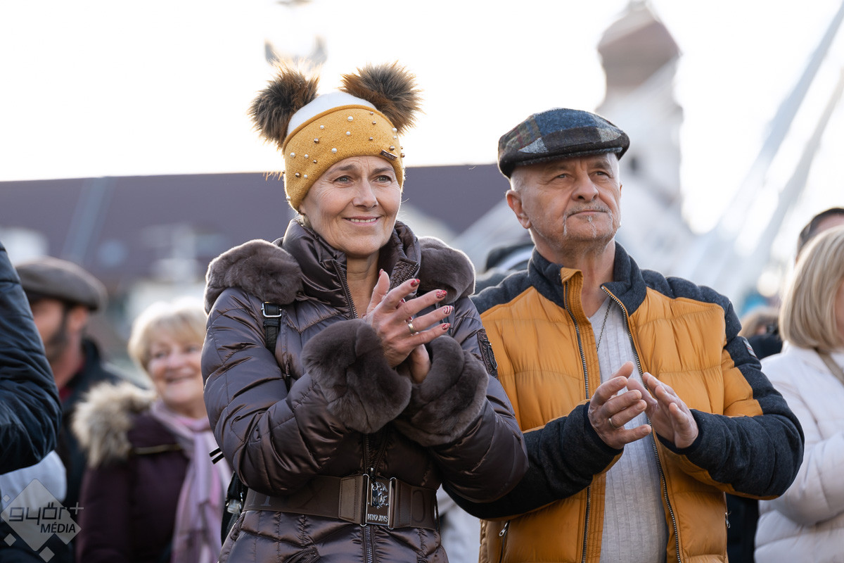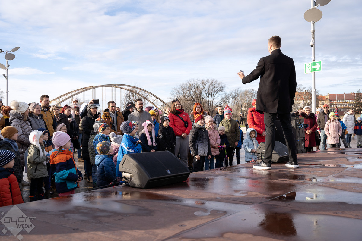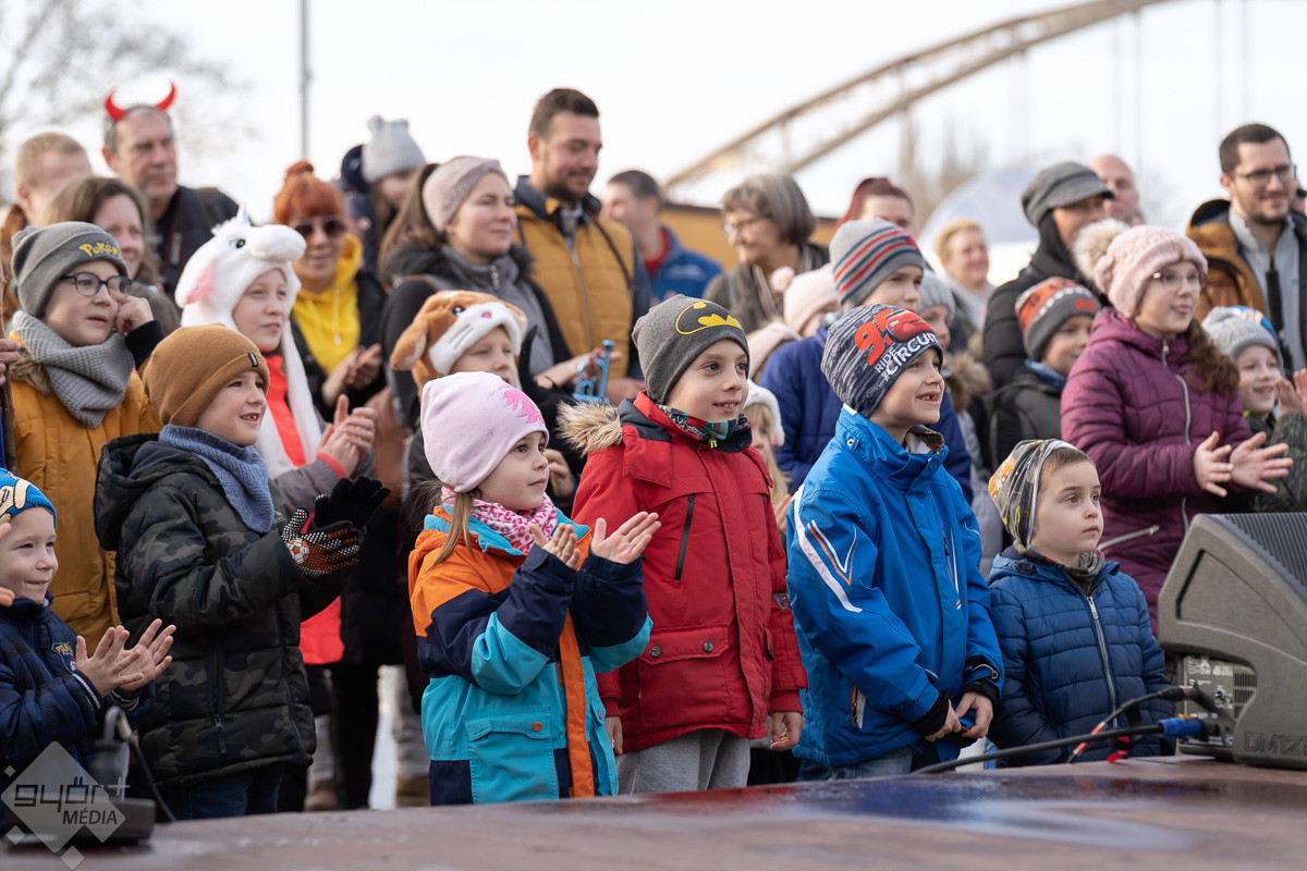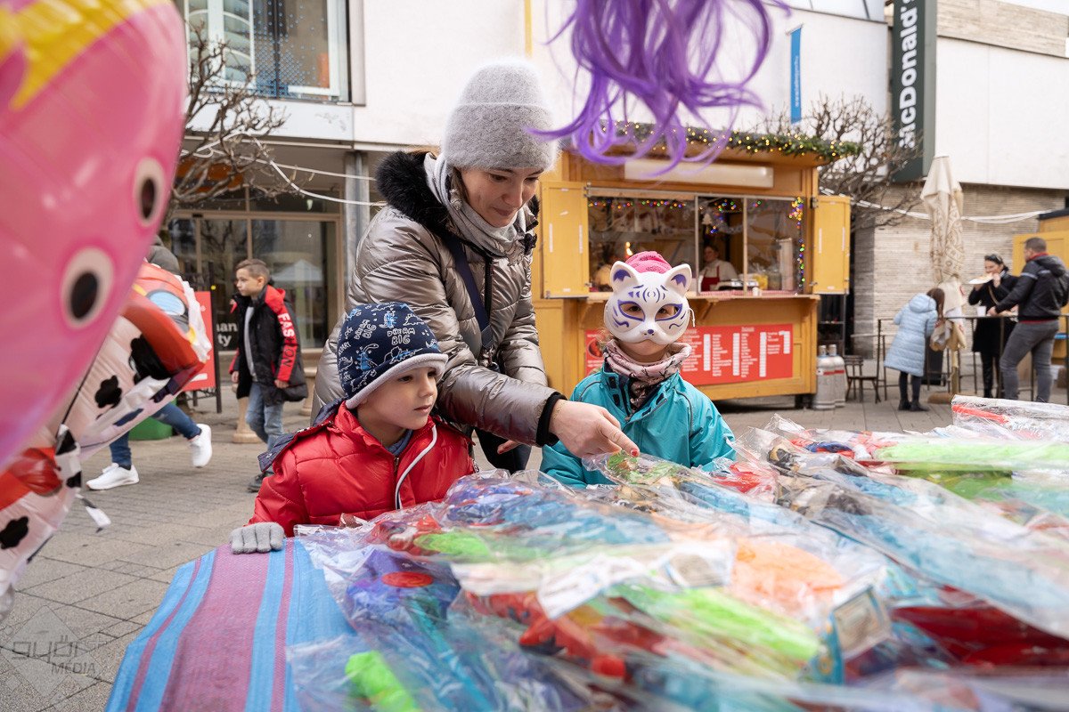 A Dunakapu téren is nagy volt a sürgés-forgás az év utolsó napjának délutánján, hiszen a színpadon előadók váltották egymást. A családoknak hirdettek programokat, s az idő is kegyes volt: szinte tavaszias levegőben szórakozhattak a kicsik és nagyobbak is.