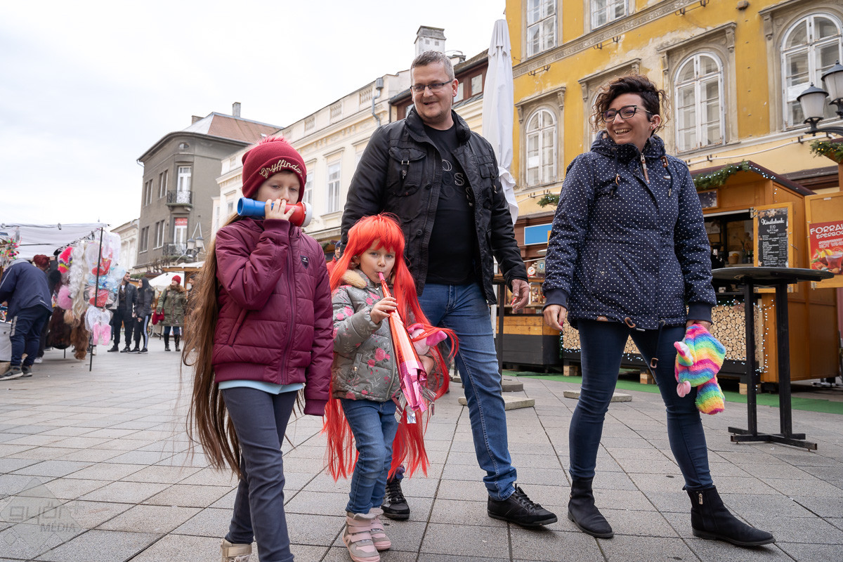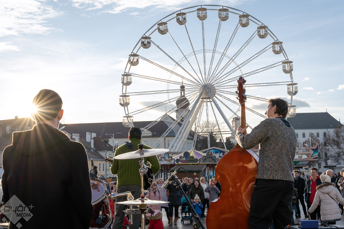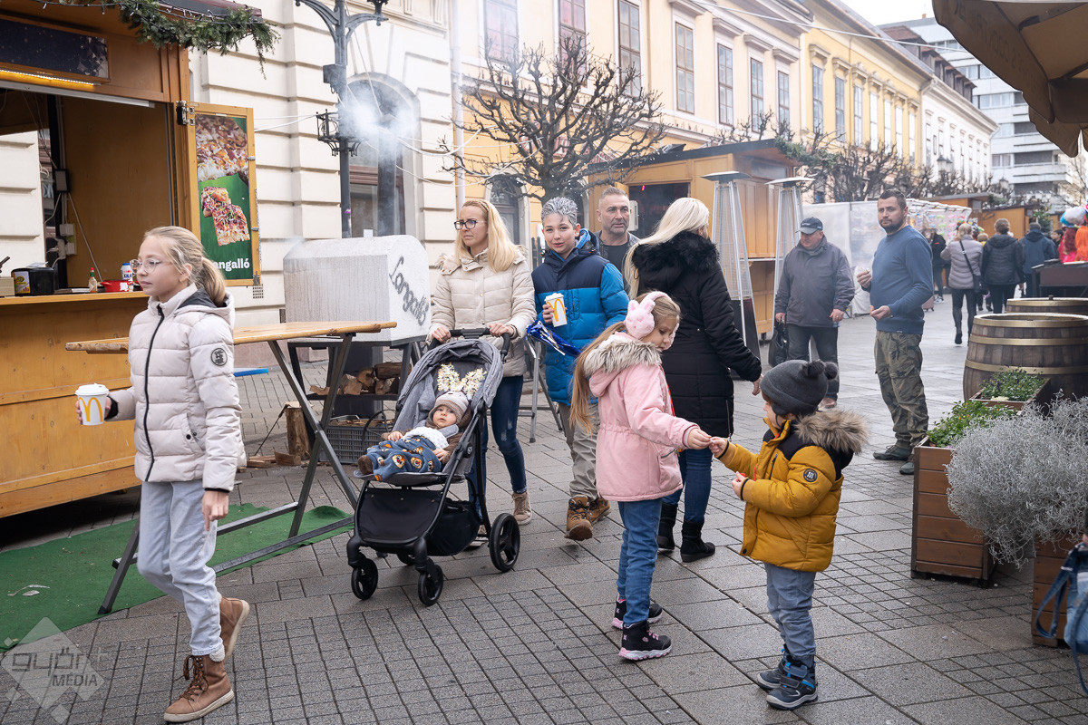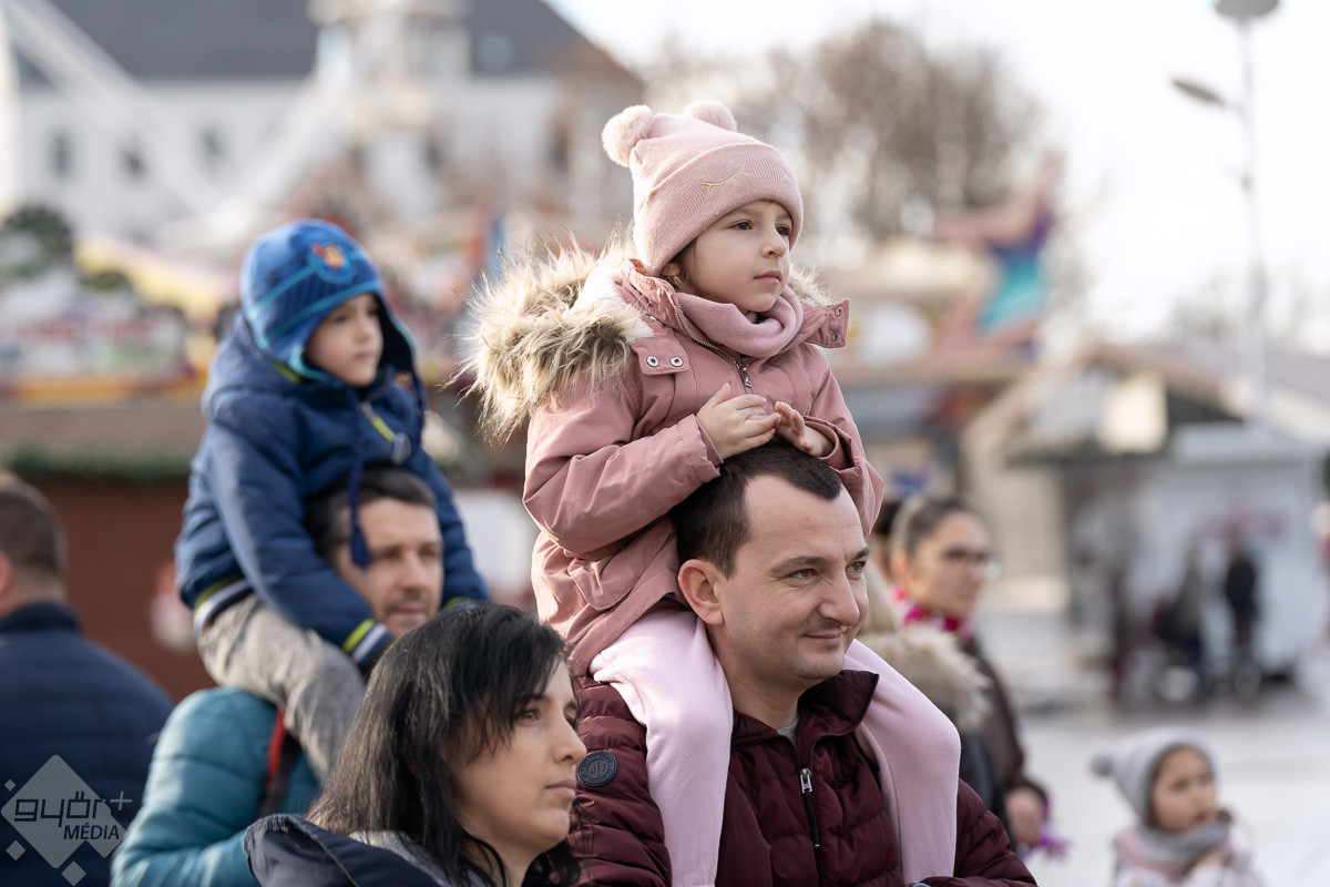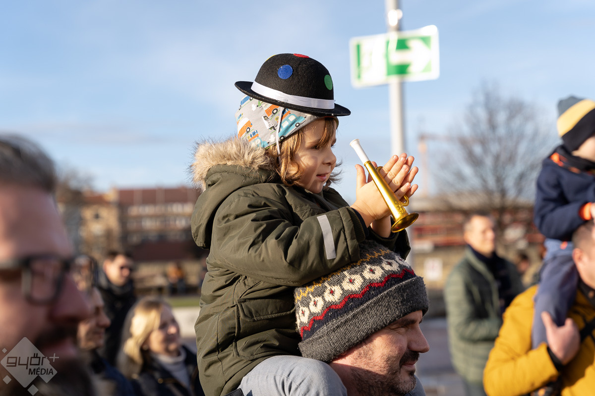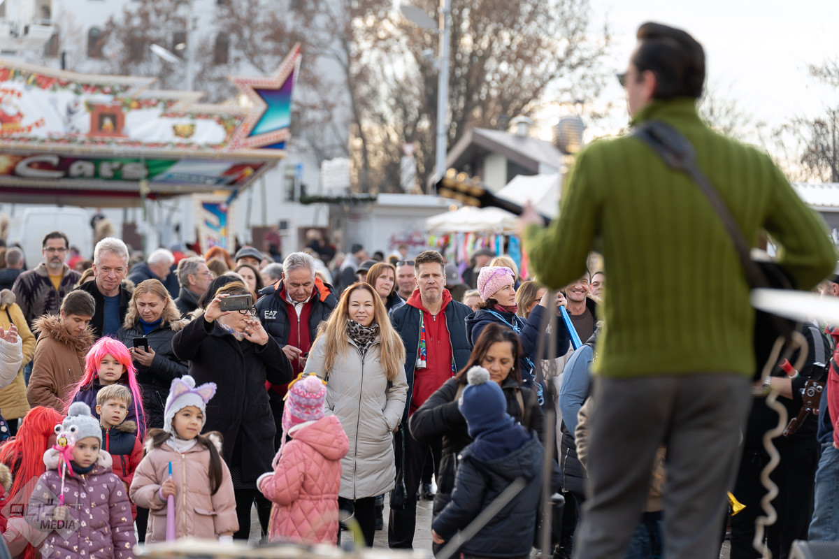 A Dunakapu téren is nagy volt a sürgés-forgás az év utolsó napjának délutánján, hiszen a színpadon előadók váltották egymást. A családoknak hirdettek programokat, s az idő is kegyes volt: szinte tavaszias levegőben szórakozhattak a kicsik és nagyobbak is.