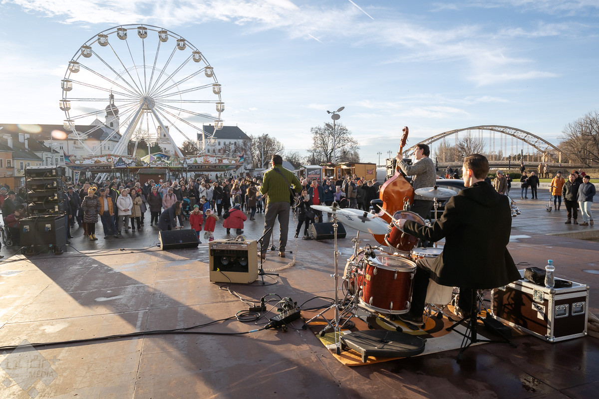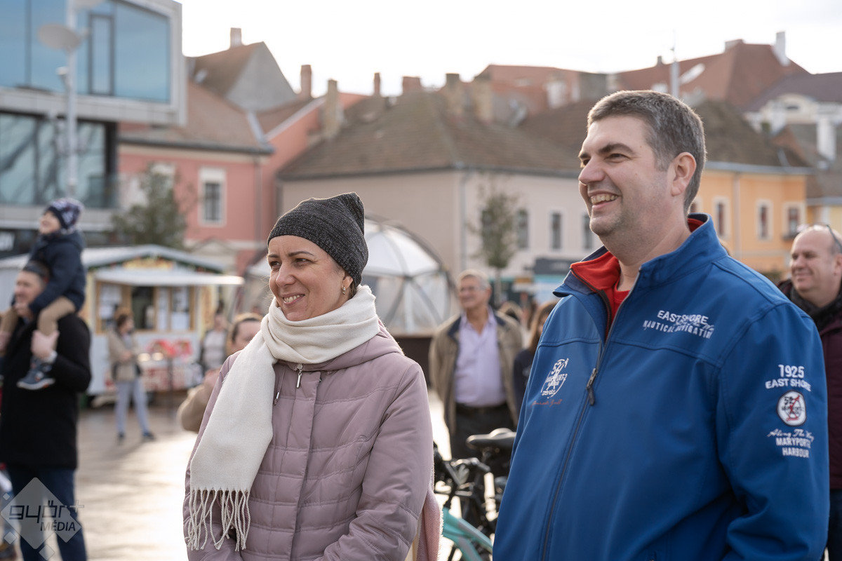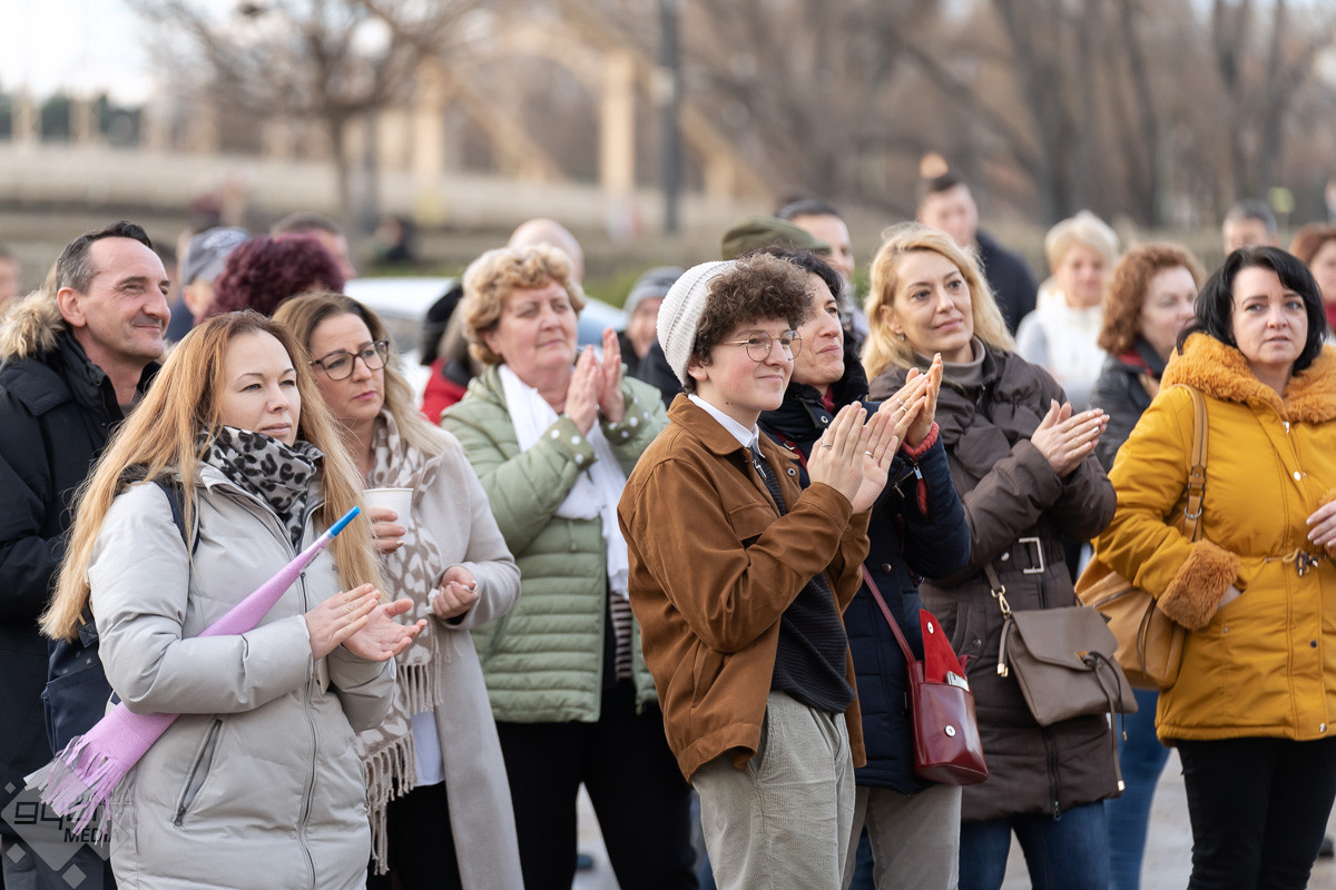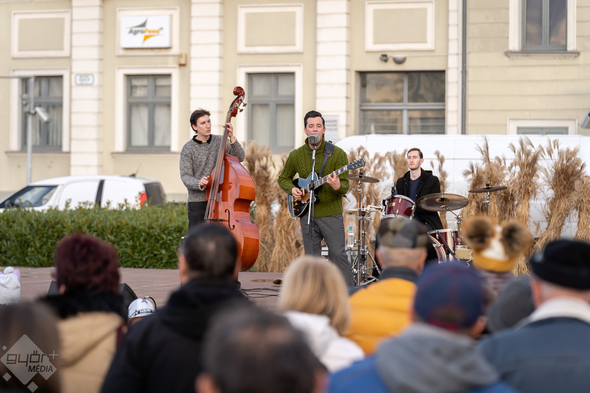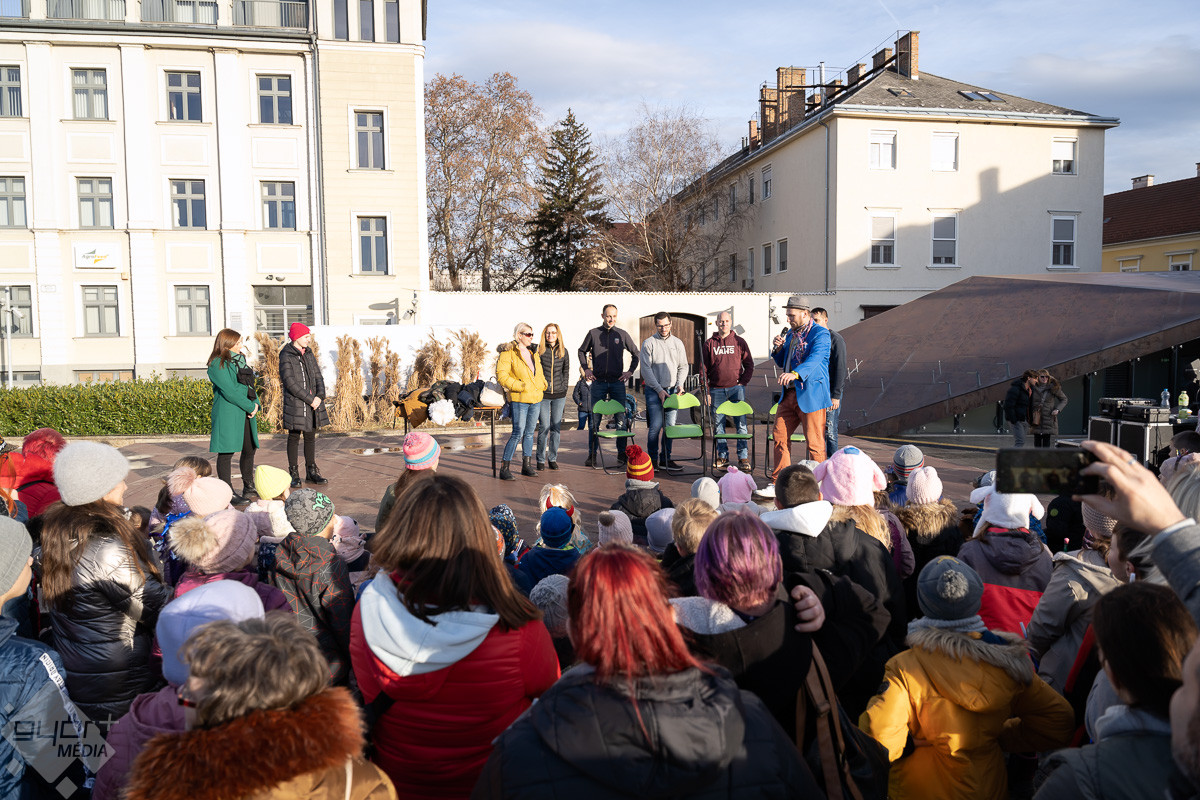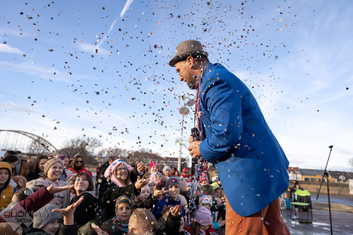 A Dunakapu téren is nagy volt a sürgés-forgás az év utolsó napjának délutánján, hiszen a színpadon előadók váltották egymást. A családoknak hirdettek programokat, s az idő is kegyes volt: szinte tavaszias levegőben szórakozhattak a kicsik és nagyobbak is.