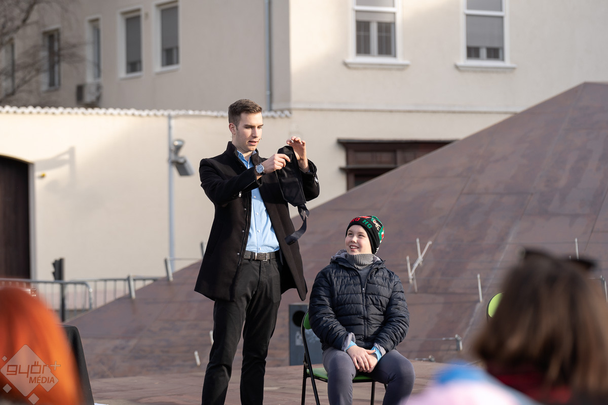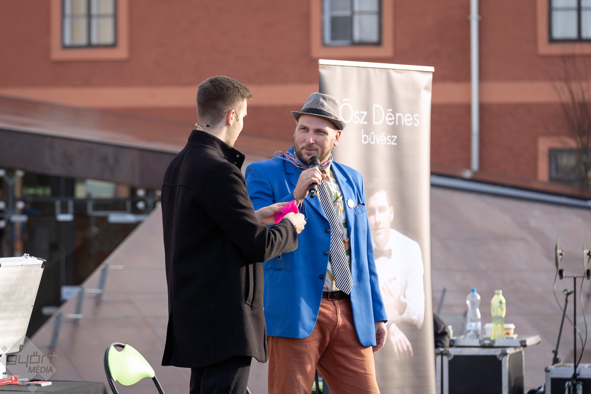 Elősként Ősz Dénes bűvész kápráztatta el az egybegyűlteket hihetetlen trükkjeivel, majd következett a gyermekek hatalmas kedvence, a Svihák Duo interaktív bohócműsora, úgyhogy csodálkozásból és kacagásból sem volt hiány a téren.