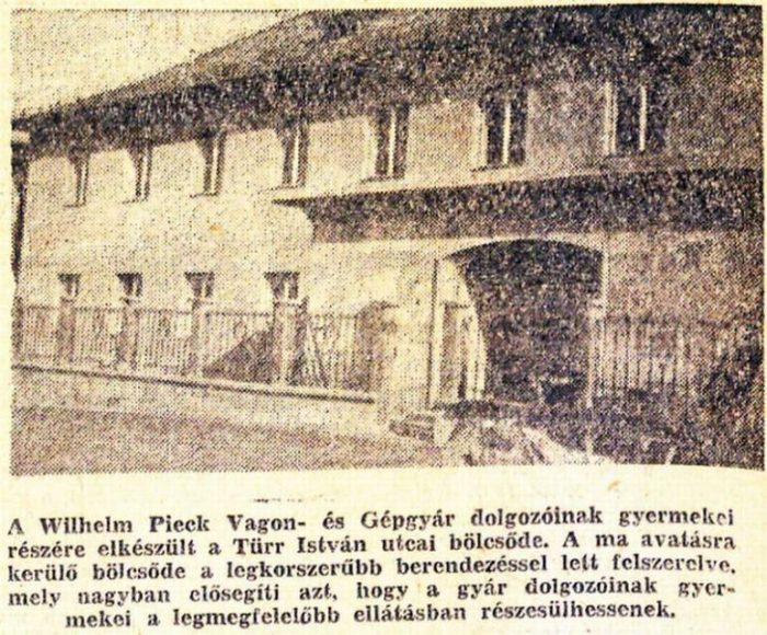 A Türr István út 4. szám alatt 1955. augusztus 20-án nyílt meg az ugyancsak a vagongyár által épített, hatvan férőhelyes bölcsőde, melynek játszókertjét különös gonddal alakították ki.