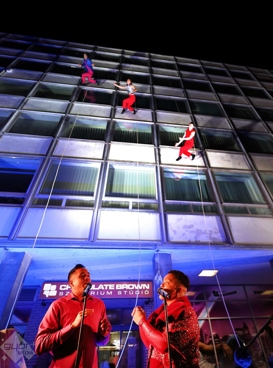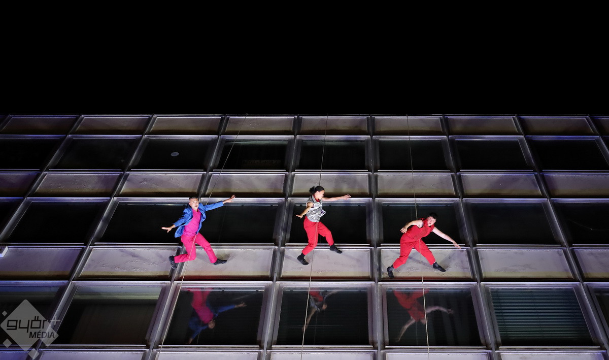Aki a csütörtöki produkcióról lemaradt, pénteken 18 órától megnézheti, hogyan perdül táncra a világhírű csapat a Czuczor Gergely utcai irodaház falán.