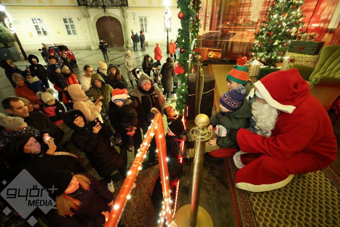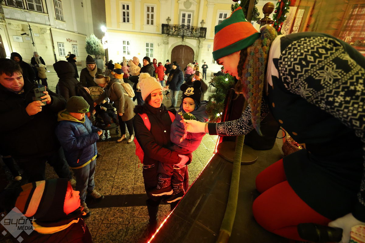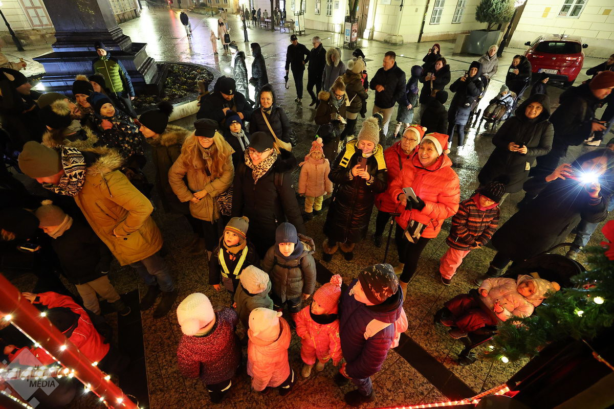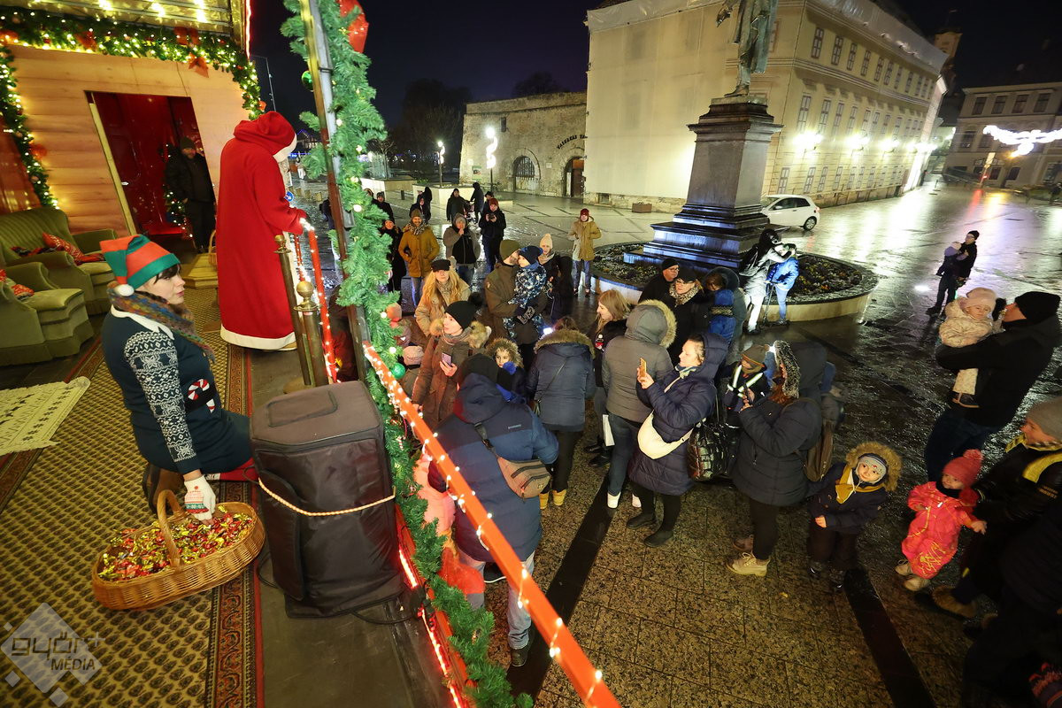 Pénteken a Mikulás a rénszarvasait a Püspökerdőben pihentette míg a több tonnás jármű díszített platóját birtokba vette. Először a Bécsi kapu téren állt meg a nyolc keréken robogó járgány, a belváros szívében már sokan várták a különleges kocsit.