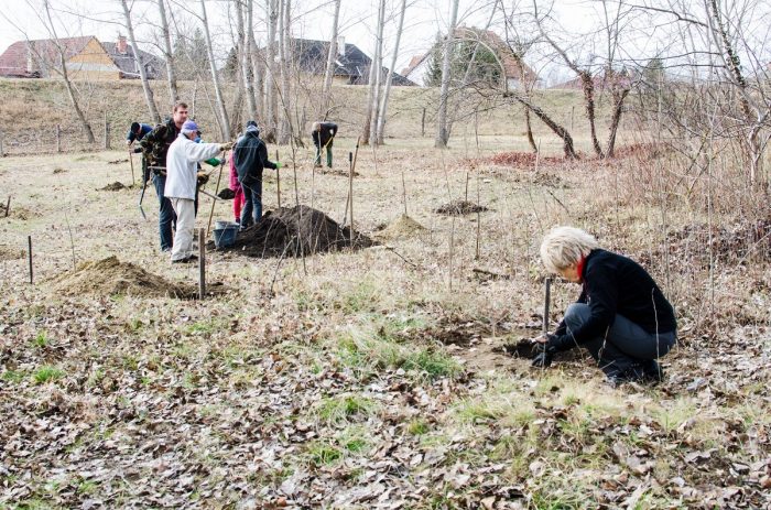 A Szitásdomb füvészkertben a naptári tél utolsó napján fákat ültetett a Zölderő Környezetvédő és Szépítő Egyesület és a Jobbkéz Alapítvány.