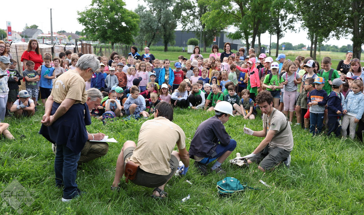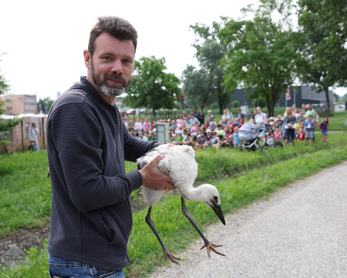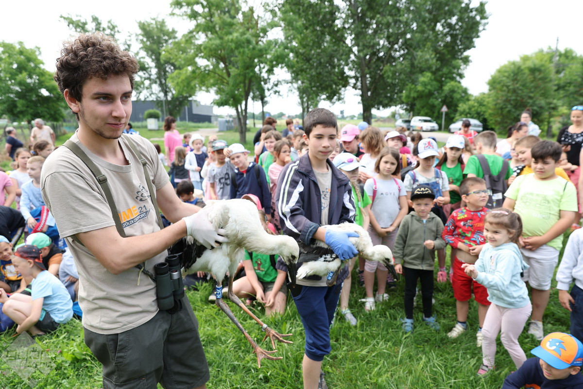 Már hagyománnyá vált hogy június elején meggyűrűzik a győrszentiváni kisgólyákat. A Gólyarét, ahol a fészek található, most is megtelt a iskolás és óvodás csoportokkal, hogy a gyerekek is részesei legyenek az eseménynek.