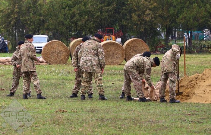 A számos hagyományőrző lovas fegyelmezett és látványos bemutatóját követően a vendégeket egy előre berendezett, elképzelt árvízvédelmi helyszínre invitálták, ahol a MH. 19. Szalontai Ferenc Területvédelmi Zászlóalj önkéntes területvédelmi tartalékos katonái már készen álltak a feladat végrehajtására.