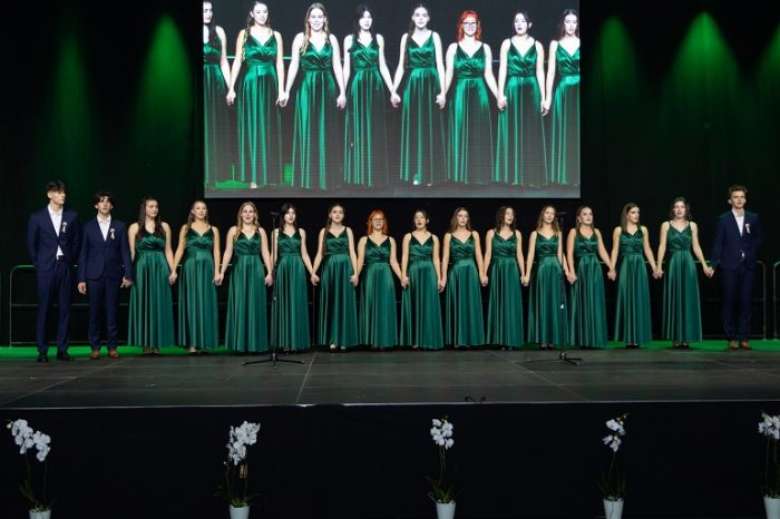 Egy egészen különleges műsorszám a 12.A osztály előadása volt, hiszen az általuk elénekelt dalt az egyik végzős diáklány komponálta, aki zongorán kísérte osztálytársait.